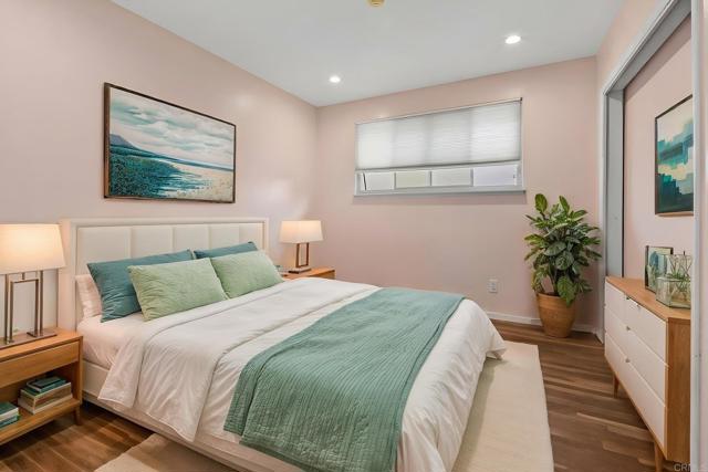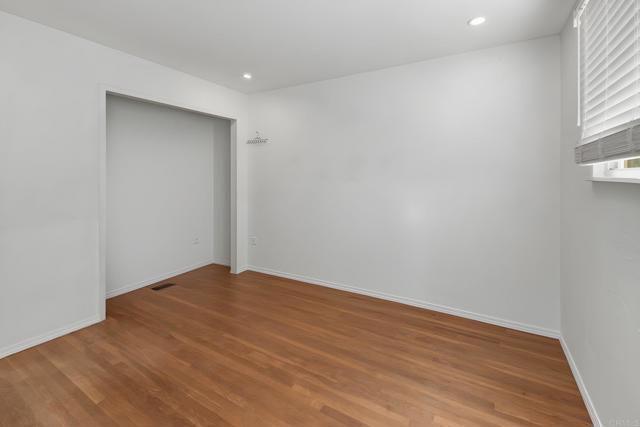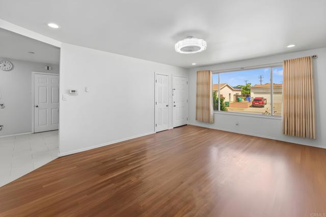 Exceptional 4-bedroom, 2-bath home boasting an expansive bonus/entertainment/media room 20x20, ideal for a home theater, play space, or flexible living area. The bright, open-concept layout is accented by attractive hardwood floors and a updated kitchen fitted with brand-new appliances. Outside, a sizable backyard offers plenty of room for outdoor activities in a quiet, family-friendly pocket. Only minutes from Mesa College, close to shopping, dining, local entertainment and beaches, with fast access to the freeways. Turnkey and move-in ready.