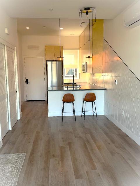 Located in the desirable coastal community of Santa Cruz, this 1,352 sq ft live/work condominium features a distinctive reverse floor plan that maximizes light, views, and privacy. The primary suite is situated on the upper level and features a west-facing orientation with access to a private patio deck, perfect for enjoying sunsets and ocean breezes. In addition to the primary bedroom, the home offers flexible ground-floor work/live space and two full bathrooms, plus an additional ½ bath on the main floor. The open-concept kitchen flows seamlessly into the family room, creating a comfortable combined living and dining area, complete with a convenient breakfast bar for casual dining or entertaining. Interior finishes include a blend of concrete, tile, and wood flooring, complemented by vaulted and high ceilings that enhance the home's airy feel. Bathrooms are well-appointed with tile finishes, including a full bath on the ground level and a primary bath with a stall shower. Comfort is maintained year-round with central forced-air heating, ceiling fans, and supplemental window/wall cooling units. The home also includes an in-unit washer and dryer for added convenience.