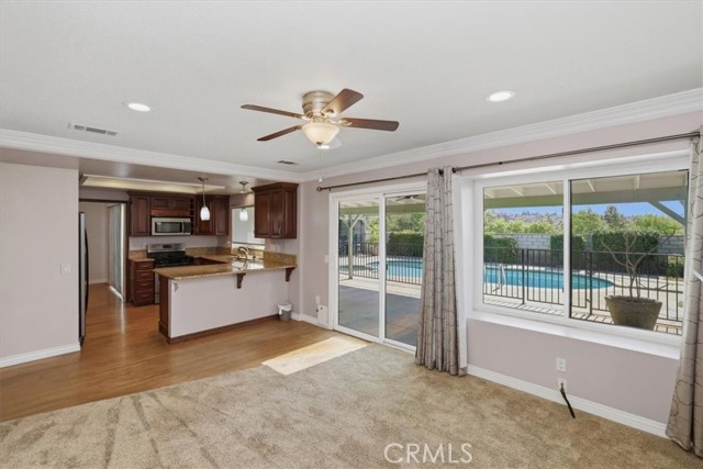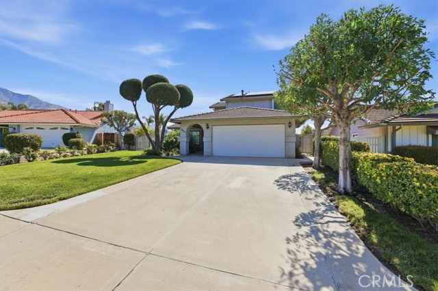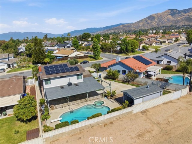 STOP THE CAR. . . YOU WON’T WANT TO MISS ONE! (yes it CHECKS ALL OF THE BOXES!) POOL? (check), PAID SOLAR (check), RV PARKING (check), MOUNTAIN VIEW (check), WORKSHOP (check), FOUR BEDROOMS (check) A-F-F-O-R-D-A-B-L-E (check) OOOOHH. . . . . . . . . . . . . and that’s not all!! Welcome to this beautifully maintained home, immediately appealing, with an arched entry and covered front porch leading to the front door. This 4-bedroom, 3-bath home in a desirable Highland location, offers a great combination of comfort, flexibility, and outdoor living. Upon entering, the volume ceilings, large picture windows and warm wood flooring create an inviting appeal. This home features a formal living and dining area and a well-appointed kitchen with granite countertops, a breakfast peninsula with pendant lights, updated cabinetry and stainless appliances. An adjacent cozy family room offers comfortable everyday living and entertaining with a custom mantled fireplace and slider to covered back yard patio (complete with lights and ceiling fans) The thoughtfully designed floor plan includes a full bedroom and bathroom on the main level—ideal for guests, multigenerational living, or a private home office. Upstairs you’ll find the primary ensuite with adjoining bathroom and a full-length mirrored wardrobe, as well as two other nice-sized bedrooms that share a hall bathroom. Step outside to your own backyard retreat, complete with a sparkling pool and relaxing spa, surrounded by a well-maintained lawn and mature landscaping. With no rear neighbor, the space feels private and open—well-suited for gatherings or quiet evenings at home while you enjoy the mountain views. Additional highlights include crown molding, ceiling fans, recessed lighting, fully PAID solar for long-term energy savings, a long driveway and custom gate for RV parking (grass covered pavers to traverse over lawn with RV), and a detached workshop area that offers flexibility for storage, and ideal hobbies, or projects. Central air, and a whole house fan adds to the home’s overall efficiency and comfort. And the garage is loaded with storage too! The property offers lovely curb appeal and landscaping with a welcoming presence. Combining practical features with inviting spaces, its an amazingly complete family home. Yes, it C-H-E-C-K-S A-L-L O-F T-H-E B-O-X-E-S ! See it today!