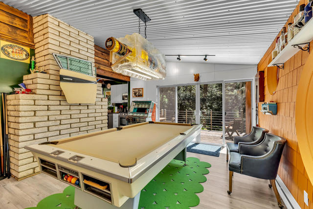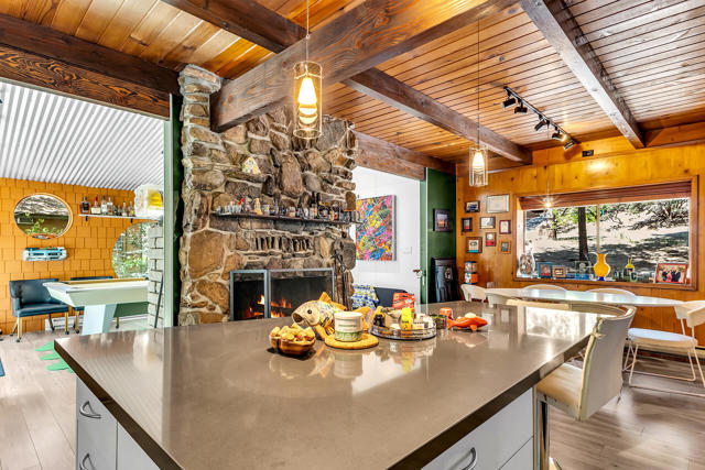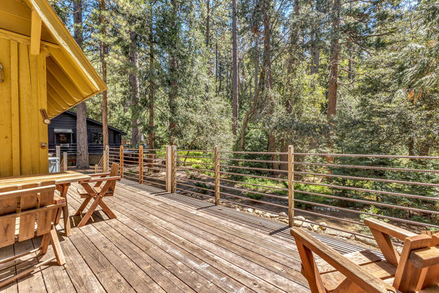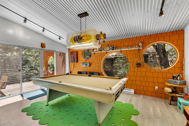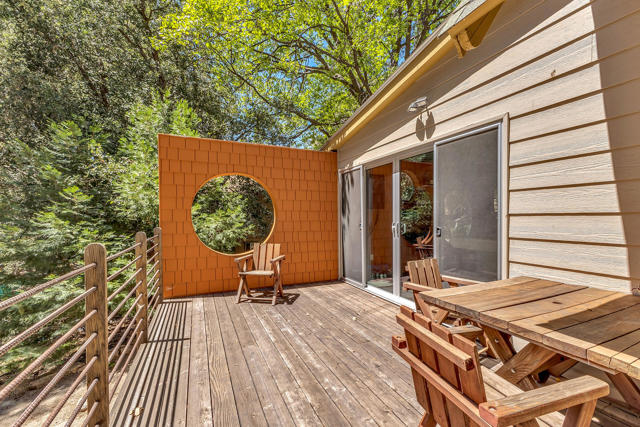 Cast a line and escape to this storybook fishing retreat tucked near the end of a quiet cul-de-sac in Idyllwild. Set on 0.18 acres with 1,443 square feet, this 3-bedroom, 2-bath mountain getaway blends rustic mid-century charm with whimsical fishing-lodge character, from nautical details and charming port hole windows to a setting designed for relaxation. Just moments from Lake Fulmor and Lake Hemet, grab your poles, spend the day on the water, then come home to unwind in your own private treed oasis. Inside, warm wood accents, abundant natural light, an open kitchen and dining area, and a spacious living room create an inviting gathering place. A bonus game room opens to an expansive back deck overlooking peaceful tree studded grounds, perfect for morning coffee, afternoon naps, or evenings under the pines. A main-level bedroom and full bath offer flexibility, while upstairs features an open loft, two additional bedrooms, a 3/4 bath, and laundry. Whether you're seeking a full-time escape, weekend basecamp, or nostalgic mountain hideaway, this one reels you in.