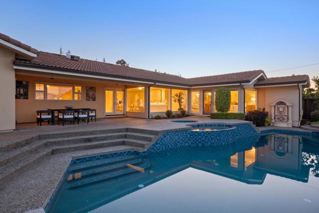 Enjoy exceptional indoor-outdoor living in this stunning single-story ranch home in Redwood City. Spanning approx. 3,000 sq ft on a generous 13,000 sq ft lot, this home showcases sweeping Bay Area views, abundant natural light, and a seamless open floorplan with high ceilings and stylish tile floors. Walls of windows connect the main living spaces to the backyard oasis, featuring a pool with waterfalls, spa and baby pool, new putting green, dining patio, and gazebo: all perfectly positioned to capture the views. A gated front yard and quiet cul-de-sac location add privacy and charm. The European-inspired primary suite offers panoramic windows, a spa-like bath with jacuzzi tub, and a unique drop-down ceiling TV. The expansive kitchen boasts dual sinks, a large island, and ample space for entertaining. A versatile pool bath connects to the mud/laundry room with convenient indoor/outdoor access. Additional highlights include a 552 sq ft garage and close proximity to Canada College, Emerald Hills Golf Course, Woodside, and downtown Redwood City, with easy access to Hwy 280.