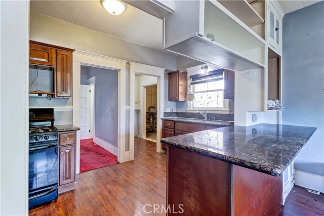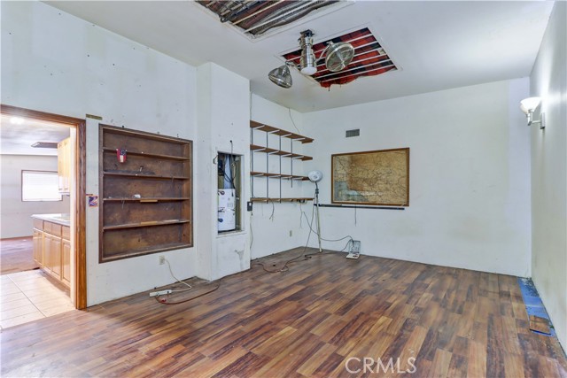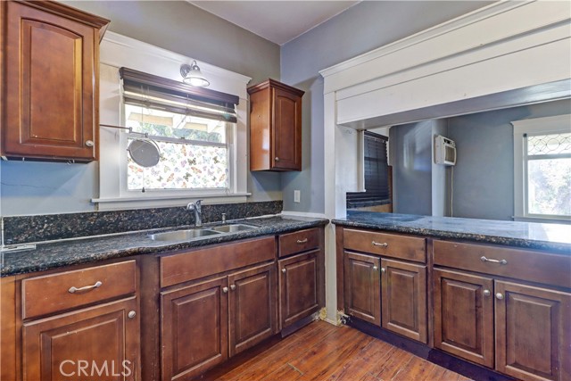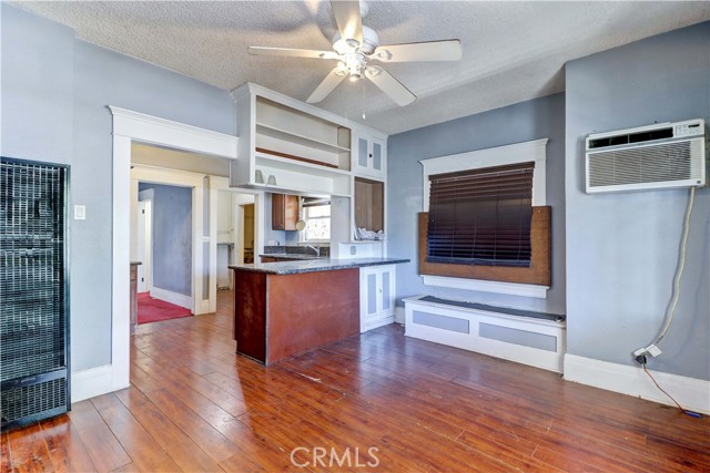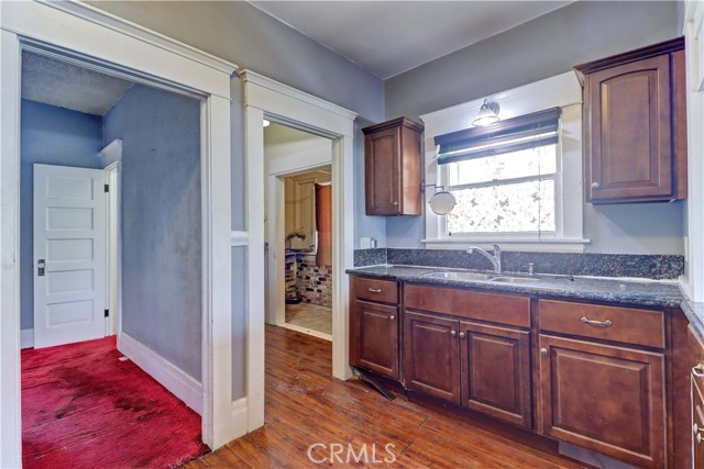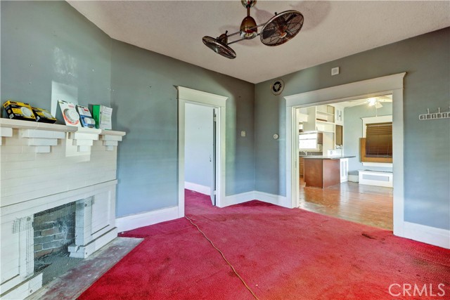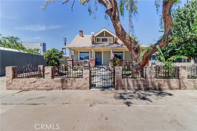 Discover the character and potential of this 1912 Pomona property, offering a unique blend of historic charm, flexible use, and generous space. Set on a raised foundation with classic wood siding, brick accents, and a welcoming wraparound front patio, this home is full of possibilities for investors, creatives, or buyers seeking a property with multiple functional areas. The main home features a one-bedroom layout with a den, plus a spacious loft area ideal for storage. The living and dining rooms showcase original details, including a vintage brick fireplace and wood pocket door. The kitchen offers granite counters, and the laundry room includes gas hookups and exterior access. The den opens to the backyard via a ramp, adding convenience and accessibility. A standout feature is the separate bunkhouse, complete with a bedroom, bathroom, kitchenette, step-down storage room, and an extra-large workshop measuring approximately 50' x 21'—perfect for hobbies, workspace, vehicles, or additional storage needs. The property also includes a two-car garage, two driveways, and a mix of wrought-iron, brick, and chain-link fencing. Located in a mixed light-industrial and residential area, this property offers versatile use options for the next owner. With its generous layout, multiple structures, and classic architectural details, this is an excellent opportunity to restore, reimagine, or invest. Property to be sold in as-is condition.