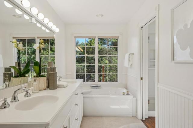 One Acre with Sweeping Bay Views in Woodside Hills. Sweeping San Francisco Bay views take center stage at this exceptional Woodside Hills property with fresh updates throughout. Spanning one acre, the elevated corner lot is positioned to capture the expansive views while also providing generous level areas for outdoor living. Enhancing the setting is the gentle sound of a meandering creek and strolling paths that create a distinctly parklike ambiance. Fresh interior updates include new paint, refinished hardwood floors, and new carpet, all complementing the living rooms signature vaulted ceiling, handcrafted with layered redwood cedar rising to a dramatic center peak. Multiple fireplaces add warmth and character, while glass doors open to several outdoor spaces oriented to enjoy the Bay views. The formal living room and dining room each have Bay views, plus there is a large open kitchen and family room for everyday gatherings. Four bedrooms, an office, and 3.5 baths are well arranged, featuring a main-level primary suite and a second suite comprising the entire lower-level with outside access and flexibility for future ADU conversion. An attached two-car garage and abundant off-street parking complete this inviting retreat with close-in convenience.