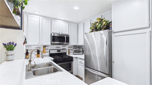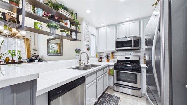 Located within a well kept gated community, this tastefully updated, two bedroom home makes exceptional use of every square foot of living space on offer. Stepping inside, you are greeted by a spacious living and dining area adjacent to the tastefully updated kitchen. The entire living area enjoys a flood of natural light afforded by the end-unit location, amplifying the space beautifully. The unit's location within the community means the pool and spa are literal steps from the front door, and the property includes its own garage space. With the 210 freeway mere moments away, getting around town - whether for work or play - is always a breeze!