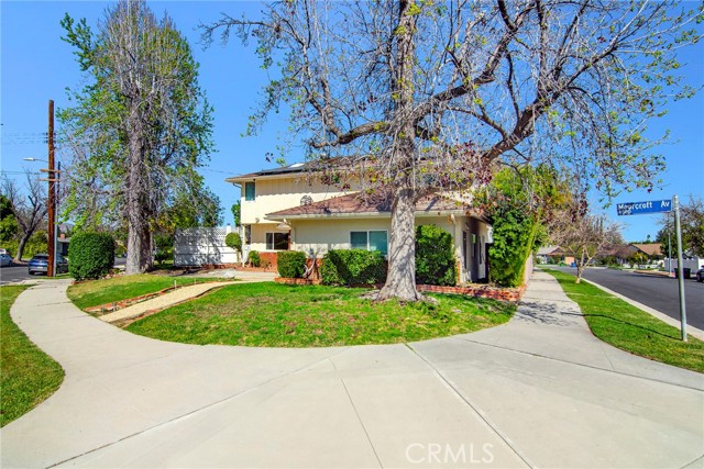Beautiful Woodland Hills corner lot that’s been tastefully updated and offers an abundance of space, including a fully permitted ADU! A large entry welcomes you just before you make your way to the formal living room, complete with gas fireplace, patio slider and open views of every room downstairs. A huge open floor plan where the kitchen is the focal point. An enormous space all together, with loads of cabinet and counter space, an 8 foot wide center island, Quartz countertops, soft close drawers, under cabinet lighting & high end stainless appliances. The dining room is in an ideal location directly off the kitchen, with enough room for a 10 foot long dining room table, perfect for entertaining large gatherings of friends and family. From here, open views of the adjacent family room prevail. Again, plenty of room for the whole family while also offering rich wood french doors that grant you access to your private oasis outside. There is a dedicated laundry room with utility sink directly off the kitchen, as well as a half bathroom off the entry. Make your way upstairs and prepare to be delighted. The primary suite has more than enough space for a king size bed and accompanying furniture, while also offering delightful views of the sparkling pool out back. In addition, the en-suite bathroom is spa-like, featuring double vanity sinks, a large soaking tub as well as an enormous walk-in shower with multiple shower heads. Finally, attached to the primary and sharing direct access is one of the guest bedrooms, perfect for every woman’s dream closet, a nursery or keep it as a guest bedroom. The final two bedrooms upstairs (4 total) continue the trend of having an abundance of space while being serviced by another luxurious bathroom, offering a wall to wall vanity with double sinks and a walk-in shower. After your tour is complete of the main house, take a stroll back out front to admire the fully permitted ADU. Once a garage, this nearly 500 sq. ft. 1 bedroom + 1 bathroom space offer a buyer countless possibilities while giving buyer’s a chance to earn immediate cash flow at $2,450/mo. Out back, enjoy a sparkling pool, fire pit, free standing pergola and an attached storage room directly off the kitchen. Additional upgrades include FULY PAID SOLAR, central heat & air in addition to mini splits for each room, EV charger, double pane windows, recessed LED lights & so much more.
