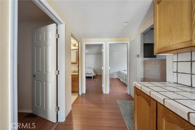 This 1,152 sq ft home offers a perfect blend of comfort, style, and modern living. Featuring 3 spacious bedrooms and 2 bathrooms, this property is ideal for those seeking a starter home or an investment property this home has great potential. The newly renovated master bathroom is a standout, showcasing stunning porcelain tile and offering a spa-like atmosphere for relaxation. Throughout the home, you'll find newer laminate floors that add a fresh, modern touch, while the kitchen’s charming tile counters provide a timeless appeal. Enjoy seamless indoor-outdoor living with a new sliding glass door in the living room/dining area that leads out to the back porch, where you can unwind while enjoying views of the greenbelt behind the property. Whether you're hosting gatherings or simply relaxing, the front and back decks provide perfect spaces to enjoy the outdoors. The HOA amenities include a gated in ground pool, horseshoe pits, 5+ greenbelts for dog walking and community use, and beautiful orchards surrounding the property in the neighborhood. Lots of great spots for a walk. Mailbox parking lot is close as well, and so is the pool. Any of the day use greenbelt areas can be used for barbecue or water activities. Bring family and friends and come enjoy all the wonderful amenities. Cool off in the pool on hot days!!! Bonus extra wide lot, +5' of extra room!