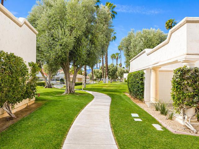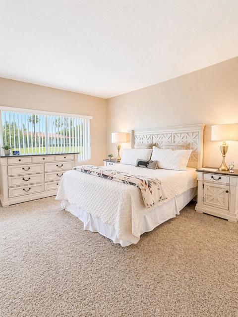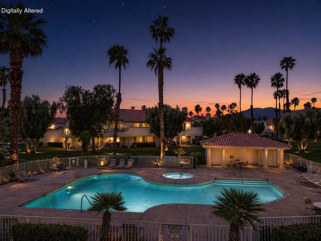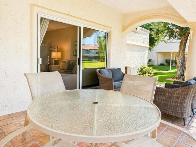 Experience the epitome of desert luxury in this stunning 2 bedroom, 2 bathroom villa located within the highly coveted, gated community of Desert Falls Country Club. Spanning 1,330 square feet of bright, open concept living space, this home perfectly balances modern comfort with effortless indoor-outdoor lifestyle Palm Desert is famous for. The expansive great room features a cozy fireplace and floor to ceiling glass sliders that lead to an open patio, offering a serene backdrop for morning coffee or evening entertaining. The spacious kitchen is well appointed with ample cabinetry and a breakfast nook, while the primary suite serves as a true retreat with generous closet space and a spa like ensuite bath. Key features includes:-Rare Short Term Rental Approval: A premier opportunity for investors seeking a high performing vacation rental or a second home that generates income.-Prime Location: Just steps away from the community pools and world class amenities. -Exclusive Amenities: Enjoy access to a championship golf course, state of the art fitness center, tennis courts, and pickleball.-Turnkey Potential: Meticulously maintained and ready for immediate enjoyment. Nestled in the heart of the Coachella Valley, you are minutes away from the world class shopping and dining on El Paseo, the Acrisure Arena, and renowned local festivals. Whether you are looking for a full time residence, a seasonal escape, or a strategic investment, this Desert Falls gem is a MUST SEE.