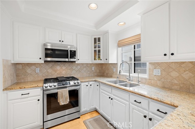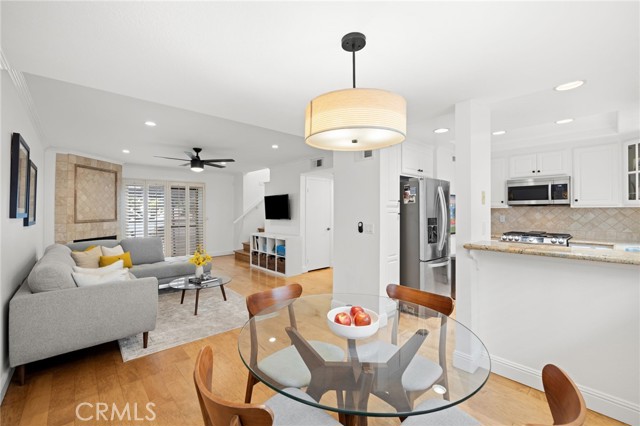 Nestled in the highly sought-after Madison Heights neighborhood of Pasadena, this stunning townhome offers a rare blend of designer finishes, thoughtful details, and effortless indoor-outdoor living. Located in the desirable Windemere Complex, this unique street-front residence is framed by a charming tree-lined setting and lush landscaping. A spacious private patio extends directly from the main living area—perfect for al fresco dining, entertaining, or simply relaxing in a serene, garden-like atmosphere. Inside, the open-concept layout is bright and inviting, ideal for hosting gatherings or everyday living. The sunlit living room features rich wood flooring, a beautifully tiled fireplace, and seamless access to the patio. The adjoining dining area flows effortlessly into the kitchen, which is appointed with classic white cabinetry, granite countertops, a stylish tile backsplash, and stainless-steel appliances. A tastefully updated powder room with designer wainscoting and a convenient coat closet complete the main level. Upstairs, you’ll find two well-appointed bedroom suites. The primary suite offers tranquil treetop views, dual closets, and an en-suite bath with double sinks and a beautifully tiled shower. The second suite features a vaulted ceiling and its own full bath with a shower-tub combination. Additional highlights include an oversized two-car garage with direct access and an adjacent laundry area for added convenience. Residents of the community enjoy resort-style amenities including a pool, spa, and BBQ area. HOA dues cover grounds maintenance, water, and trash. Ideally located near ArtCenter College of Design, the Metro Gold Line, Whole Foods Market, major freeways, and the vibrant shops and dining of Old Town Pasadena, this exceptional home offers both comfort and convenience. A truly special opportunity to own in one of Pasadena’s most desirable neighborhoods.