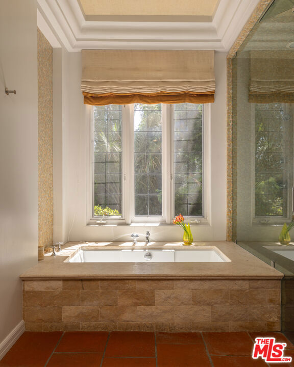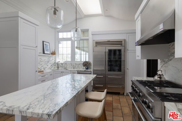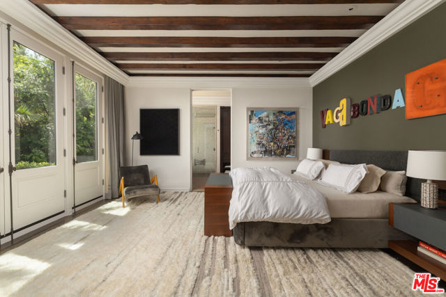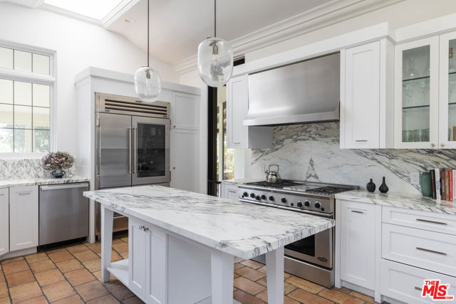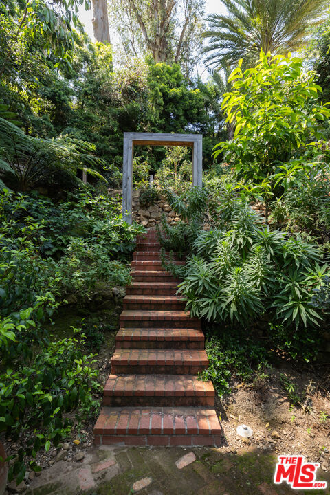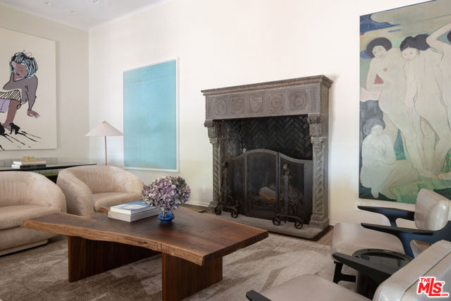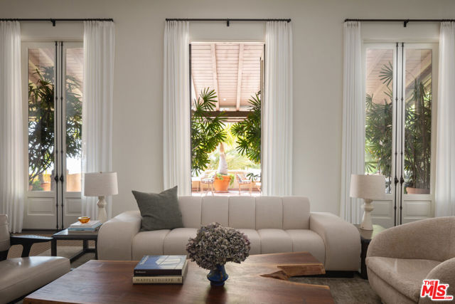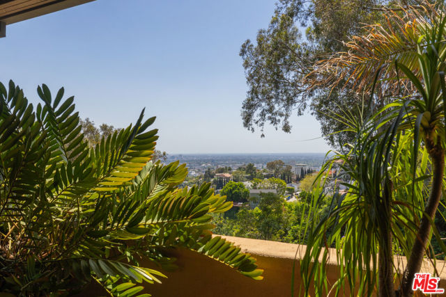 First time available in over 20 years! Stunning 1920's restored & renovated Spanish villa with incredible design along with sensitive attention to original architectural details. Steeped in Hollywood History of legendary figures. Beautiful entry hall opens to a grand scale living room with extra-high ceilings, stone fireplace and French doors that open to the most incredibly large entertainment terrace overlooking the forest like grounds & city views. Gourmet Chef's kitchen with center island, custom cabinetry and polished marble countertops. Formal dining room with walls of view windows opens to the covered terrace w/ outdoor living/dining. Cozy media room/den with built-in cabinetry. Large primary suite with French doors, gorgeous bath w/ soaking tub and custom walk-in closet dressing room. 2 additional en-suite bedrooms plus a separate bonus room for gym, office or possible 4th bedroom/guest area. The unique lush grounds feature mature trees and pathways. The private pool area is in a forest like setting of nature elements w/ city views. Great Outpost location on a cul-de-sac street. Tucked away & private yet convenient to major studios. This is a very unique property rarely seen - don't miss this opportunity - Must see!