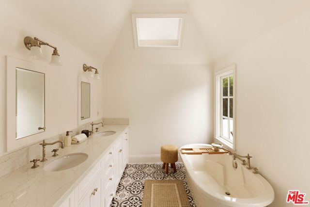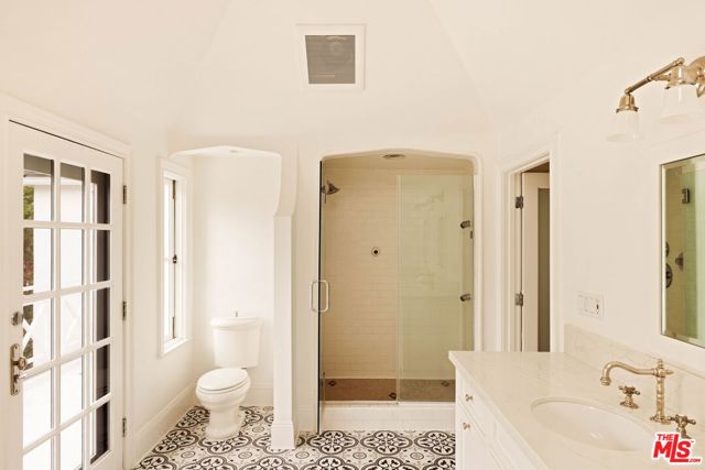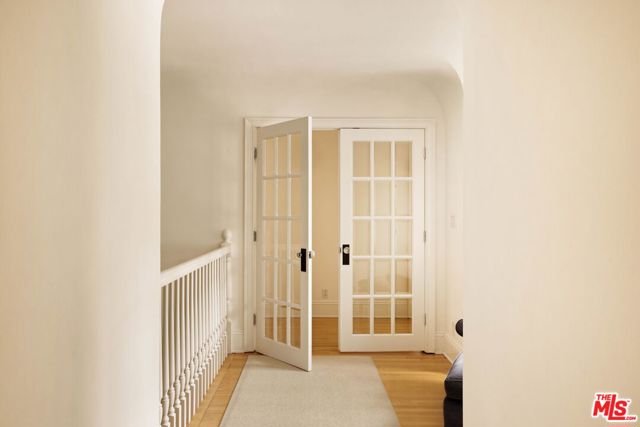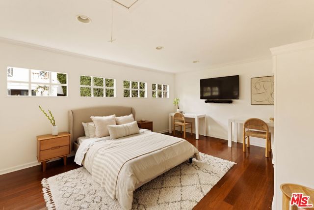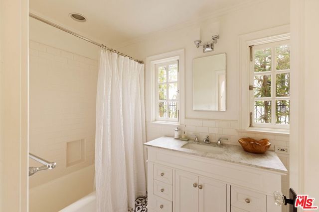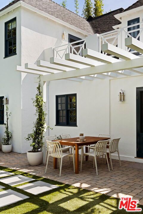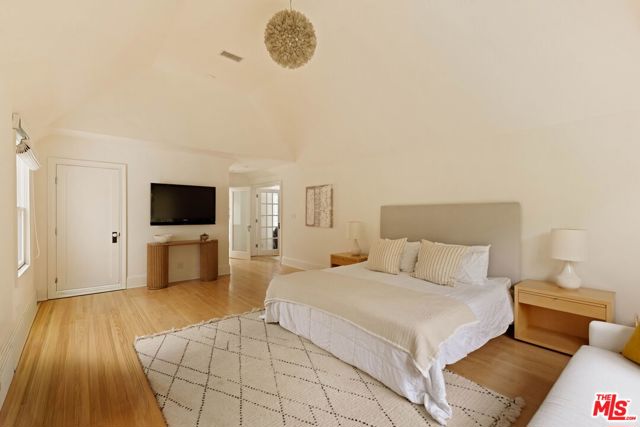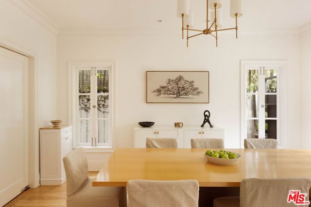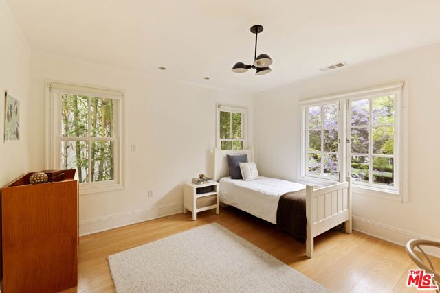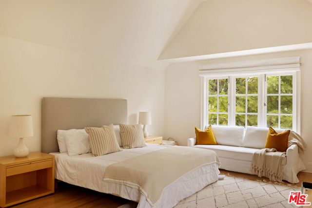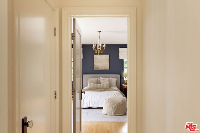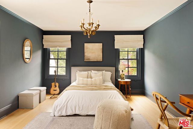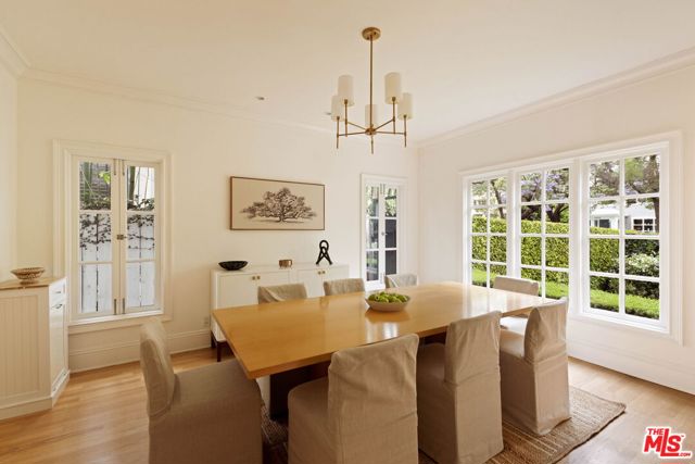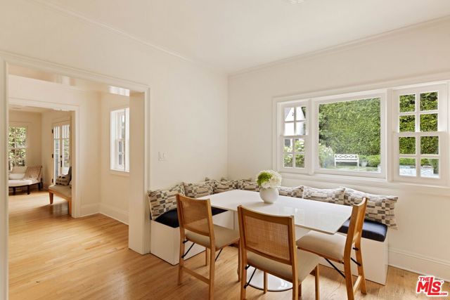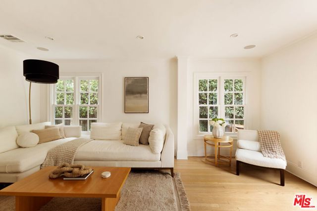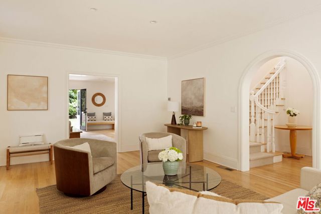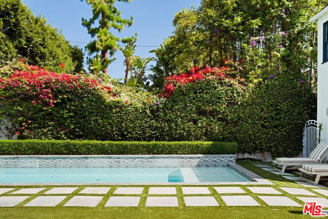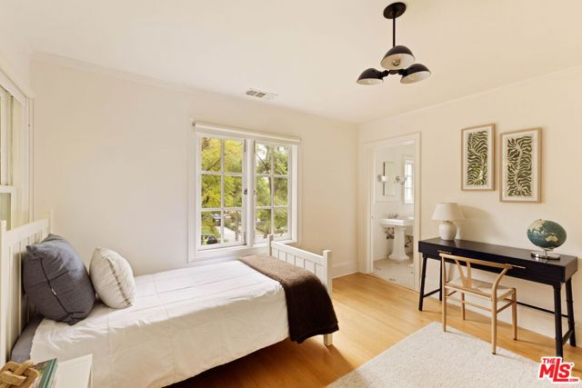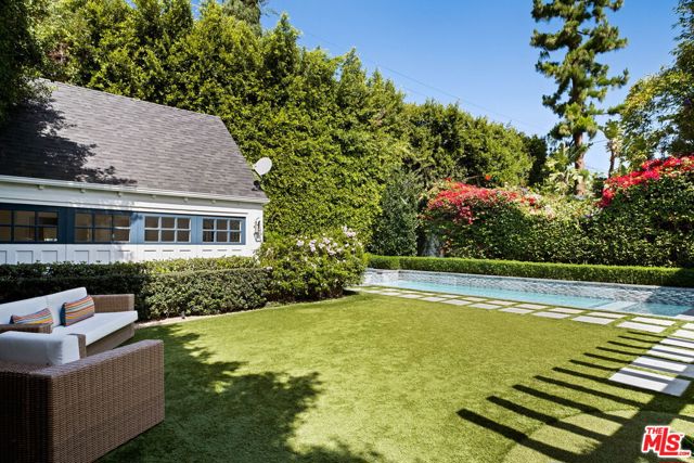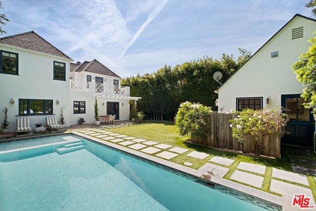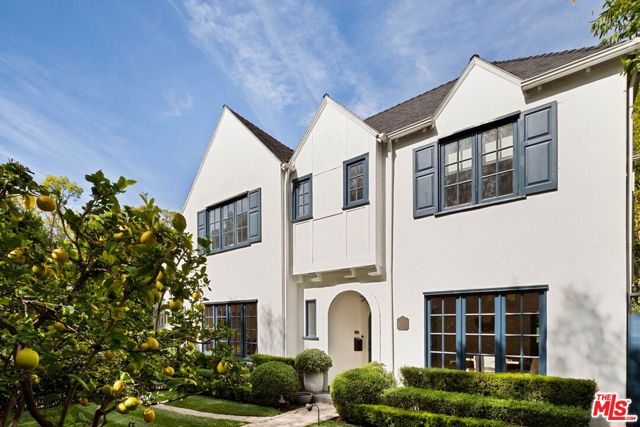 Welcome to this Timeless Retreat in the Heart of Spaulding Square. Set behind a private front yard on one of the most desirable blocks, this enchanting neighborhood gem captures the romance of classic Hollywood with the ease of modern California living. Rich in character yet thoughtfully updated, the home offers a rare combination of warmth, elegance, and modern functionality. A charming foyer welcomes you with soaring ceilings and natural light, opening to an expansive living room with a statement wood-burning fireplace. The formal dining room flows seamlessly into a well-appointed kitchen complete with premium appliances, custom cabinetry, and an inviting breakfast area. Just beyond, a comfortable family room with custom built-ins opens directly to the backyard, creating an ideal layout for everyday living and entertaining. Upstairs, the expansive primary suite serves as a private retreat, featuring a light-filled bathroom with spa-like bath, generous closet space, and a sun-drenched terrace which overlooks the grounds. Two additional bedrooms, one that offer an en-suite bathroom, provide comfort, quiet, and privacy for family or guests. The outdoor setting is truly serene. Surrounded by soaring hedges and mature landscaping, the lush backyard offers multiple areas for relaxation and entertaining, including a patio, sparkling pool, pergola, and a detached guest house with a full bath, closet, and attic space perfect for visitors, creatives, or a home office. Located within the coveted Spaulding Square neighborhood, just moments from the best of West Hollywood, Sunset, and the Hollywood Hills, this distinctive property captures the essence of classic Los Angeles charm with all the conveniences of modern living.
