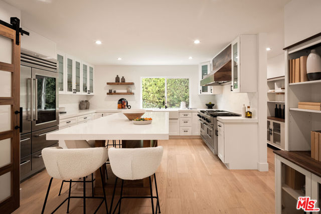 Welcome to 6317 Orion Avenue in Cameron Woods, one of Los Angeles' most iconic hidden enclaves. Developed in the late 1940s as a luxury alternative to post war housing, Cameron Woods is known for its estate sized lots, mature tree lined streets, and timeless charm. Orion Avenue stands out as a picturesque, storybook street lined with white picket fences and is widely recognized as one of the most sought after filming locations in the city. Homes here are more than residences, they are assets, with neighboring properties reportedly generating significant income from film and production use. Cameron Woods is known for its rare sense of community, where neighbors host seasonal gatherings and take pride in maintaining a welcoming, connected environment that is increasingly hard to find in Los Angeles. Completely reimagined with no expense spared, this turnkey home offers 4 bedrooms, 4 bathrooms, and a dedicated office. The chef's kitchen is a true centerpiece, featuring a 48 inch Sub Zero Pro refrigerator, 60 inch Viking range, custom hood, farmhouse sink, and a large walk in pantry. Thoughtful design and high end finishes create a space that feels both elevated and livable. Set on an expansive lot, the property offers privacy, scale, and flexibility, highlighted by a circular driveway and strong curb appeal. The backyard delivers a resort style setting with a pool, ample entertaining space, and room to expand, including ADU potential.Fully paid solar with a Tesla inverter and a Tesla Wall Connector provide energy efficiency and modern convenience. Rarely do homes in Cameron Woods come to market with this level of renovation, lot size, and income potential. A unique opportunity to own on one of the most recognizable streets in Los Angeles