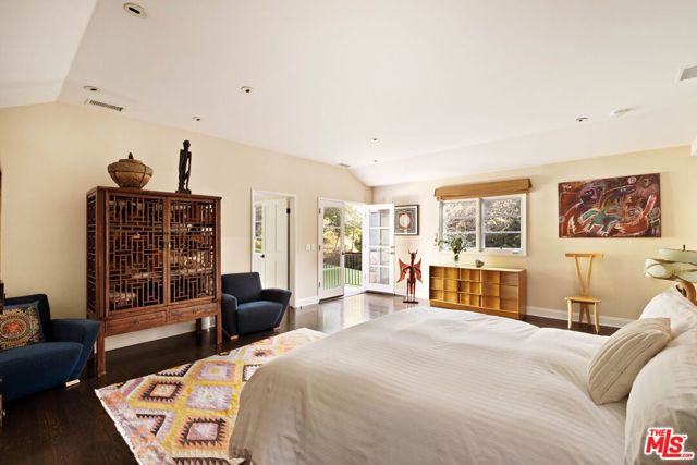 Gated 1948 Traditional residence with 5 bedrooms and 5 baths on nearly half an acre in a serene, park-like setting north of Sunset. Exceptionally private, meticulously maintained, and extensively updated, the property is designed for seamless year-round indoor-outdoor living and entertaining. A porch overlooks the secluded front yard. The entry opens to a black-and-white marble foyer and an expansive living room with bay window, crown molding, and antique French marble wood-burning fireplace. The formal dining room with wainscoting and pocket doors connects to the family room, featuring a second wood-burning fireplace with antique mantel, built-ins, and bookshelves. A breakfast bar and informal dining area flow into the spacious chef's kitchen, appointed with professional-grade appliances and a walk-in pantry. French doors and windows throughout fill the home with natural light and open to lush garden views. Just off the kitchen is a separate guest or staff suite with ensuite bath and walk-in closet, along with an adjacent laundry room. A central hall with powder room leads to the private primary suite, complete with a cedar-lined walk-in closet and bath with soaking tub and heated floors. Two additional generously sized bedroomsone with built-in desk and shelvingshare a full bath. The lower level, with its own entrance, offers exceptional flexibility as a guest suite, office, gym, screening room, or staff quarters, and includes an ensuite bath, temperature-controlled 1,500-bottle wine cellar, and a large storage area. The deep, park-like grounds are framed by mature trees and landscaping and feature a large swimmer's pool, dining area, and acabana with built-in prep and serving station complete with large sink, mini refrigerator and custom cabinetry.Major upgrades include a new dual high-efficiency heat pump HVAC system with ducting, flame-retardant cool roof, 400-amp electrical service, whole-house solar, tankless water heater, dual Level 2 EV chargers, drought-tolerant landscaping and updated pool equipment.A rare offering combining warmth, scale, and privacy, just minutes from studios, premier dining, shopping, and West Hollywood Elementary.