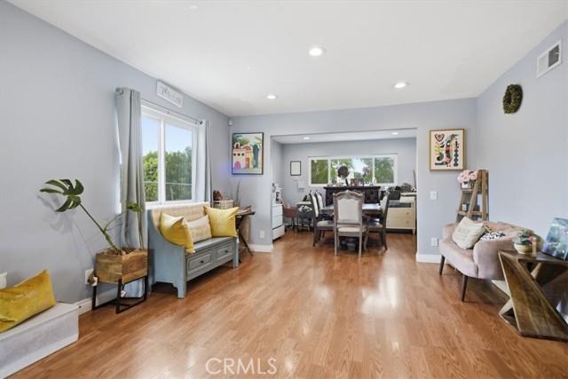 Welcome to this well maintained 3-bedroom, 2-bathroom home, situated on a private cul-de-sac in a clean and well-established neighborhood. Set on a corner lot, this property offers great views from both the front and backyard, creating a peaceful and inviting setting. Step inside to an open floor plan filled with wonderful natural light that flows throughout the living and dining areas. The spacious living room features a charming brick fireplace, creating a warm space for relaxing or entertaining. The recently upgraded kitchen offers plenty of storage space, along with a large pantry. The layout is thoughtfully designed, with two well-sized bedrooms sharing a full bathroom, the primary suite has its own private bathroom and generous closet space. Additional highlights include laminate hardwood flooring, and recessed lighting. Enjoy indoor-outdoor living with a cozy back patio and a private backyard that offers plenty of space for entertaining, gardening, or simply taking in the views. The home also features a separate laundry room with direct backyard access, and a two car attached garage with built-in storage and finished drywall. Conveniently located near shopping, dining, parks, freeway, just minutes from Cal State Northridge, making this an ideal location for both homeowners and investors alike.