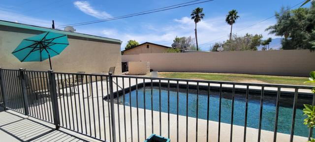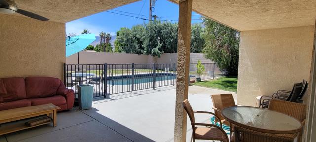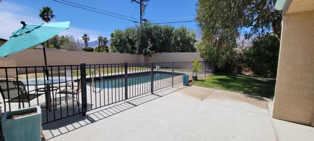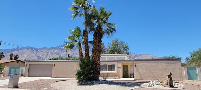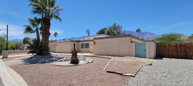 Nestled in Desert Park Estates,this 3 bedroom/3 bath, 1,862 sf home on a larger 11,326 sf lot is ready for you to add your personal touches and make it your own whether it be a primary home or desert retreat. Feel gently caressed by the San Jacinto mountain range while relaxing in and around your security fenced pool, entertaining on the covered patio or playing croquet on the ample lawn shaded by mature landscaping. While this is a large neighborhood, it has a real community feel to it with a range of mid-century homes and contemporary styles from the 70s and 80s. Special features of this home include: a permitted den/office off the kitchen. Additional storage areas/pantry off of the kitchen. Double paned French doors in livingroom, den/office and dining room with the blinds in between the glass panes. The 3rd (3/4) bathroom is located just inside the 2 car garage for easy access from the pool. The clerestory windows in the livingroom area of the home give abundant natural light along with the skylights in the 2 interior bathrooms. Priced well below others in the area to afford you the ability to dream big!