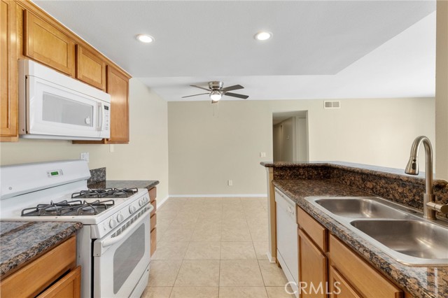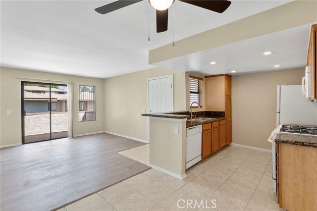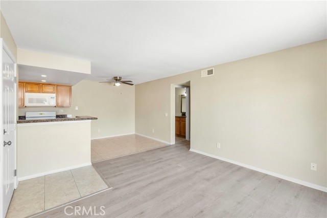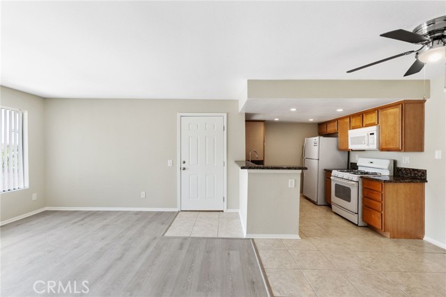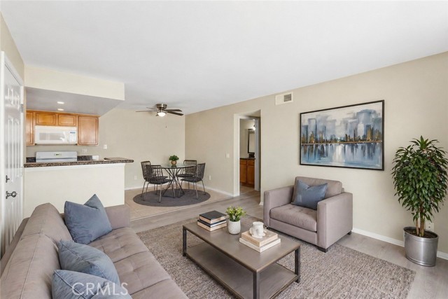 Welcome home to this beautifully updated condominium located in the desirable gated Palmilla Community in Riverside, conveniently situated just minutes from UC Riverside. This highly sought-after floor plan offers 2 bedrooms and 2 full bathrooms, providing a comfortable and functional layout ideal for first-time buyers, students, investors, or anyone looking for low-maintenance living in a prime location. Step inside and immediately notice the fresh interior paint throughout the home along with brand-new luxury vinyl plank flooring that adds a modern touch while offering durability and easy upkeep. The bright and airy living room features high ceilings and an abundance of windows that bring in plenty of natural light, creating an open and inviting atmosphere. The living space flows seamlessly into the kitchen, making it ideal for both everyday living and entertaining guests. The kitchen is equipped with granite countertops, and ample cabinetry offering both style and functionality for preparing meals at home. Both bedrooms are generously sized, and the two full bathrooms provide convenience and flexibility for residents and guests alike. Step outside to enjoy the balcony perfect for relaxing after a long day. A bonus is that the unit also includes an assigned one-car garage conveniently located beneath the home for easy access and additional storage. Residents of this gated community enjoy updated roofing throughout the complex as well as access to a sparkling pool and spa area—perfect for enjoying warm Southern California days. Conveniently located near shopping, dining, major freeways, and local amenities, this move-in ready condo offers the perfect combination of comfort, convenience, and value. Make this great home yours today!