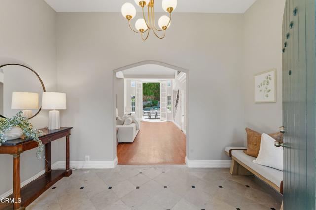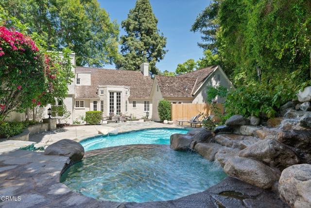 Tucked behind privacy hedges on an idyllic, tree-lined street near Lacy Park, 1181 Old Mill Road is an enchanting San Marino residence ideal for planting roots. This distinctive 1927 character home showcases beautiful European architecture, elegant interiors filled with natural light, and lush, private grounds that offer a peaceful escape from the everyday.Beyond the gated driveway, an expansive front lawn is shaded by mature trees and surrounded by vibrant landscaping. The home's formal entry provides an impressive welcome with its array of mullioned windows, 12-foot ceilings, and arched doorways. In the formal living room, the ceilings soar even higher, up to 16 feet, creating an exquisite sense of spaciousness and ease.Entertaining takes on an elevated sophistication in this gorgeous setting, enhanced by a statement fireplace, richly toned hardwood floors, and French doors that open to the peaceful backyard. Continuing the home's grand scale, the window-wrapped formal dining room is generous enough for even the most ambitious holiday feast. Nearby, the kitchen is bright and spacious, with a charming breakfast area and built-ins.When it's time to recharge, the luxurious primary suite offers cathedral ceilings, French doors to the patio, and a spa-like bath. Two additional bedrooms on the first floor are well-sized and filled with natural light. Upstairs, a versatile loft opens to a romantic balcony with serene neighborhood views. On this level, you'll also find a fourth bedroom with access to a hallway bath, perfect for visiting loved ones or a dedicated home office.The resort-like backyard is surrounded by lush foliage, offering total privacy as you dine alfresco on the patio and take leisurely dips in the sparkling pool and spa. Set in a picturesque pocket of San Marino and brimming with possibilities, 1181 Old Mill Road invites a lifestyle defined by ease, connection, and year-round enjoyment.