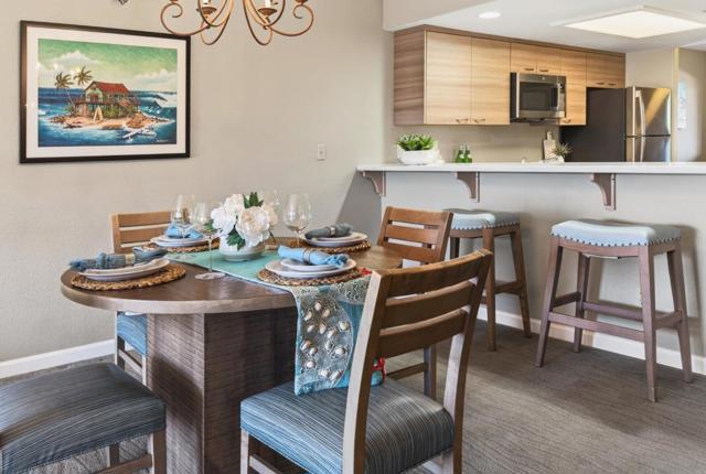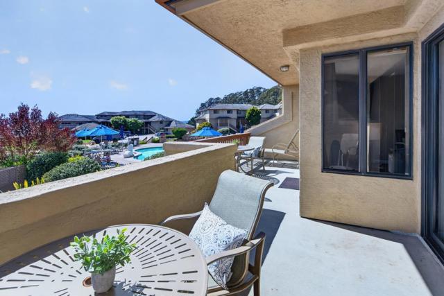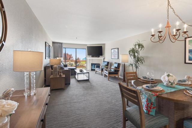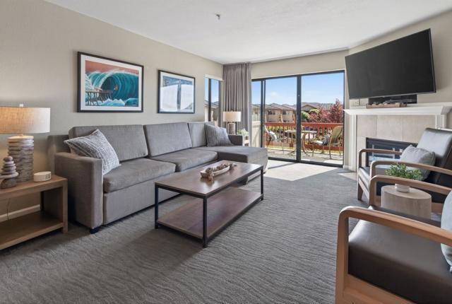 Overlooking the north bluff pool with a partial ocean view, this first-floor, single-level Seascape Beach Resort unit offers convenient coastal access and a comfortable setting to gather and unwind. The layout features spacious bedrooms and a flexible bonus area with a sofa sleeper for additional guests. Sliding doors from the living area and primary bedroom open to connected decks, creating an easy indoor-outdoor flow. Features include a full kitchen, fireplace, in-unit stacking washer and dryer, walk-in closet in the primary bedroom, and two owner storage closets. Located near the secure pool, parking garage, and elevator access, this unit is ideal for relaxed coastal getaways. This is a vacation-use property within a professionally managed resort, allowing up to 90 days of personal use annually, with the remainder managed for guest stays. Amenities include three pools, on-site dining, reserved beach fire pits with s'mores service, and walking paths with direct beach access. Nearby are Seascape Golf Club, Seascape Sports Club for tennis and pickleball, local dining, and Seascape Foods market. The Santa Cruz Beach Boardwalk is about a 20 minute drive, while destinations such as the Monterey Bay Aquarium, Carmel-by-the-Sea, and Pebble Beach are approximately 45 minutes away.