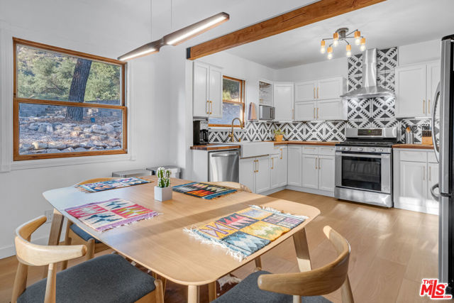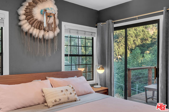 Experience the ultimate blend of serene mountain living and urban convenience at this rare, private creekside sanctuary in the San Gabriel Mountains. This exceptional property, perched on a sprawling 27,708 sq. ft. LCA22-zoned lot, offers breathtaking 360-degree mountain views and is surrounded by thousands of acres of national forest. Feel a world away, yet be less than 15 minutes from both the LA Valley and Santa Clarita. This one-of-a-kind property presents a unique opportunity for income generation and multi-generational living with its thoughtfully designed layout and agricultural zoning. The upper main house features a modern open floor plan with a bright living area, vaulted ceilings, and a romantic fireplace. The gourmet kitchen, a perfect fusion of style and function, boasts walnut butcher block countertops, custom backsplash, a farmhouse sink, and designer brass fixtures. The downstairs guest house is an attached, self-contained unit with its own kitchen, oversized full bathroom, and laundry room. A private exterior entry door makes it an ideal income-generating rental or a secluded space for guests. Alternatively, a convenient interior hatch complete w/ staircase allows you to connect the two levels for a larger primary residence. The property's LCA22 zoning opens up a world of possibilities for a self-sufficient lifestyle. Recently terraced with multiple levels of retaining walls, the land offers abundant space for vegetable gardens and lush landscaping. A massive, level upper graveled area provides ample room to expand. Use it for additional parking, a storage shed or leverage the agricultural zoning to create a small farm with the existing chicken and goat pens. This area is also perfect for building a separate ADU, a barn, or horse stables, offering a fantastic opportunity to generate passive income or create a unique living space. Enjoy the outdoor life on one of several decks and porches or take a refreshing dip in the new cowboy pool or nearby creek. The home features updated roof, new floors, fresh paint, updated electrical and plumbing, and mini-split AC/heaters in all key living areas. The spectacular, unobstructed views of the San Gabriel Mountains and the gorgeous topography are truly unparalleled in Los Angeles. This is more than just a home; it's an outdoor lover's dream and an incredible investment opportunity.