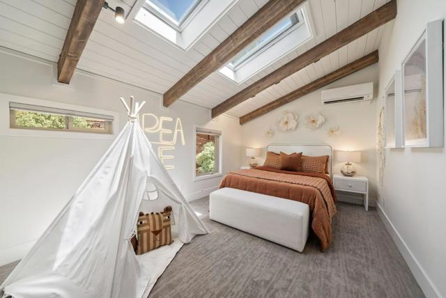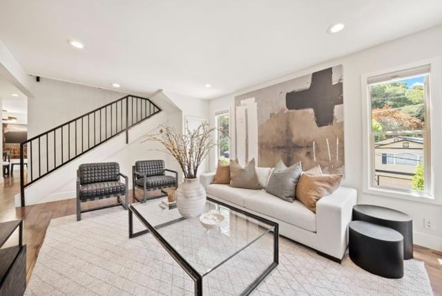 Beautifully remodeled 4-bedroom, 2.5-bath, with 1821sf of living space, located on a quiet court in the highly desirable Belmont hills. The updated kitchen includes granite countertops, center island, and a premium Miele range, opening directly to the family room for a true open-concept living experience. A separate formal living room & dining room provide additional space for entertaining and everyday living.All four bedrooms are located upstairs, along with two full bathrooms. The primary suite enjoys a spacious closet, views, a private balcony and fireplace. Enjoy outdoor living on the large deck with private hillside, oak trees and mature plantings. The home is surrounded by a peaceful, serene setting while still being conveniently close to everything the Peninsula offers. Additional features include an attached garage with bonus landing area, ideal for a playroom or extra storage, concrete siding, new roof, solar panels at 11.5kW, EV charger, and A/C. Located within a top-rated Belmont school district and just minutes to hiking and mountain biking trails, this home offers the perfect blend of nature, convenience, and central Peninsula access to major commute routes, shopping, and dining.