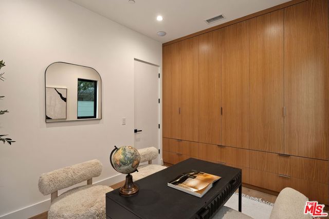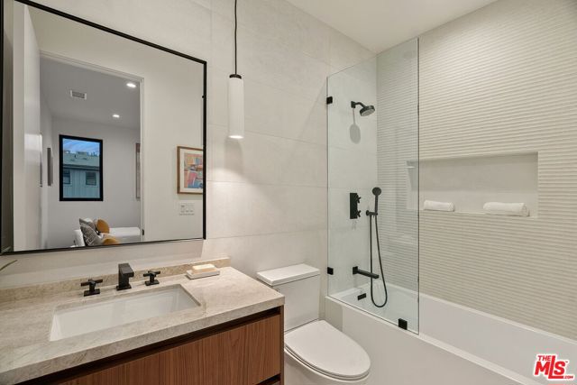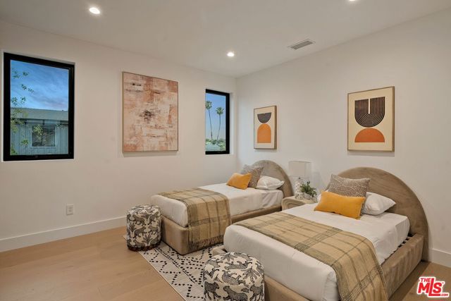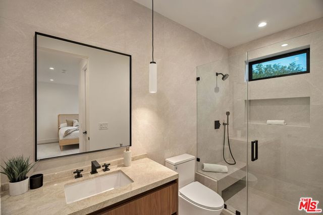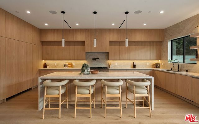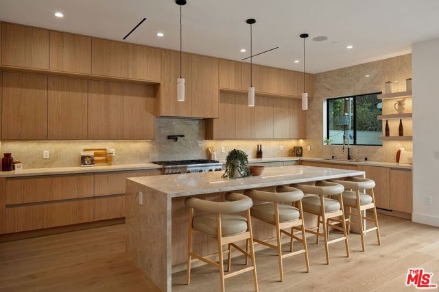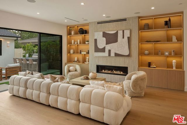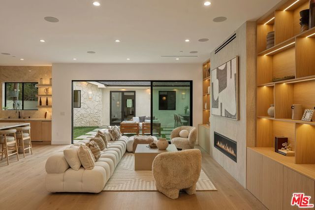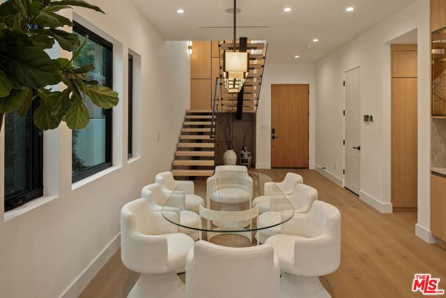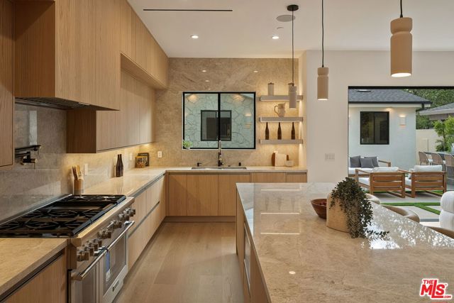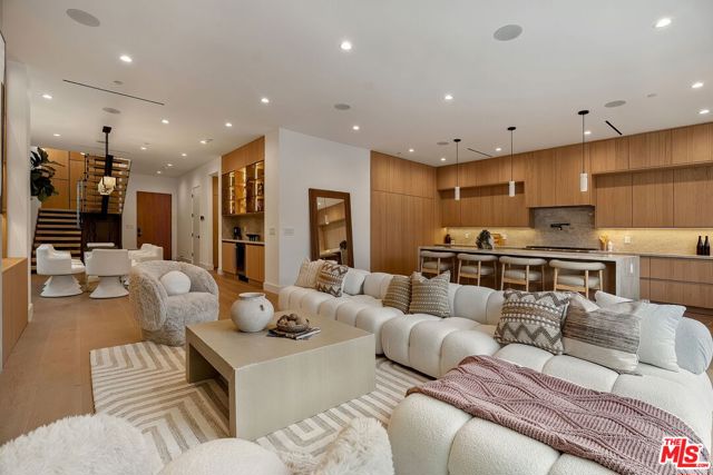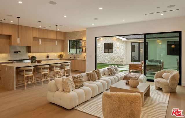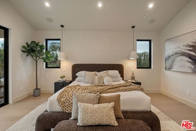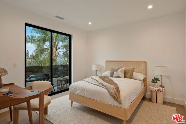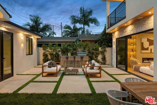 A striking fusion of contemporary design and natural elements, this newly built organic modern farmhouse offers an unparalleled living experience. Designed with seamless indoor-outdoor flow, the open-concept layout is bathed in natural light, boasting soaring ceilings and meticulous craftsmanship throughout. This fully automated smart home showcases exquisite European white oak flooring, custom rift white oak cabinetry, and hand-selected marble and tile, complemented by premium fixtures. The heart of the home is a chef's dream kitchen, featuring sleek custom-paneled Thermador appliances, an oversized waterfall island with Taj Mahal quartzite, and seamless integration with the spacious dining and living areas. A dramatic floating staircase adds architectural interest, while expansive glass doors open to a private entertainers paradise complete with a built-in BBQ island, lush green space, and ample room for gatherings. Upstairs, the serene primary suite is a true retreat, offering a cozy fireplace, a spa-inspired bathroom with a soaking tub, rain shower, dual vanity, and a generous walk-in closet. A private balcony overlooks the beautifully landscaped backyard, adding to the tranquil ambiance. Two additional en-suite bedrooms provide comfort and sophistication. Adding to the homes versatility, a separate 1-bedroom, 1-bathroom ADU with a full kitchen offers endless possibilities, ideal for guests, or a private office. Located in the highly coveted Mar Vista wood streets neighborhood, this rare gem offers an exceptional blend of style, comfort, and functionality.