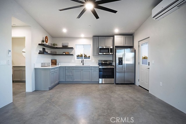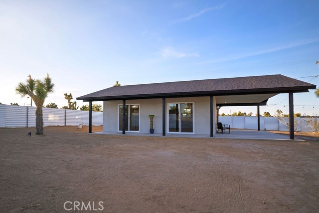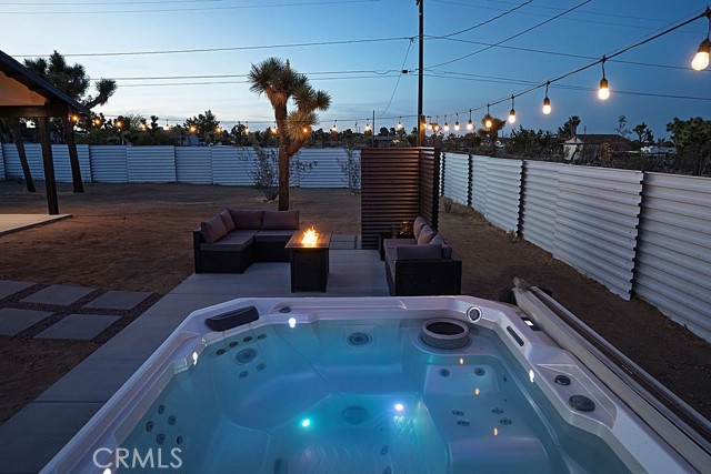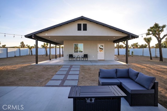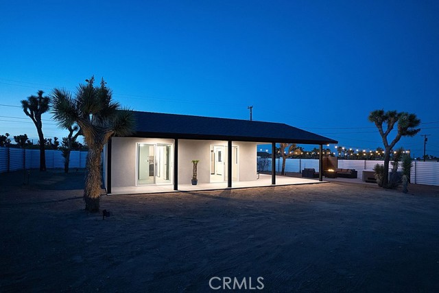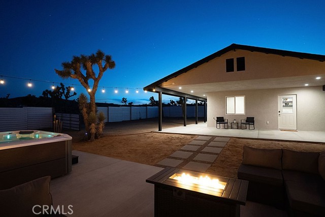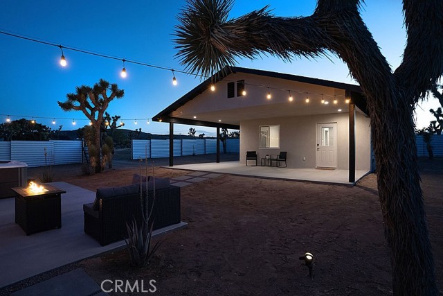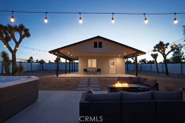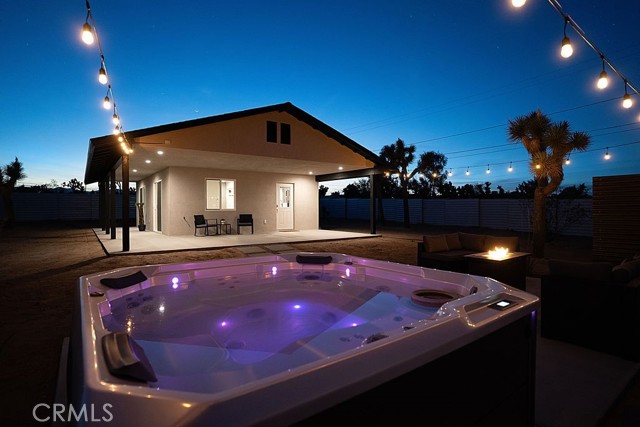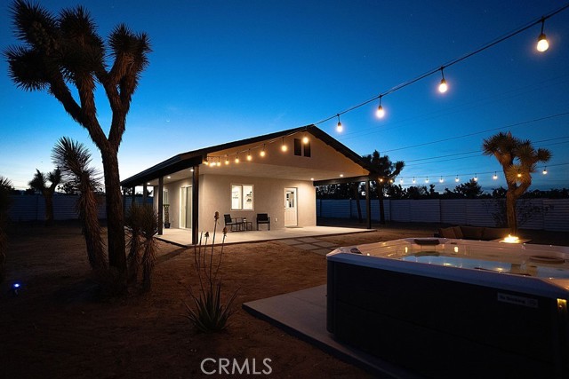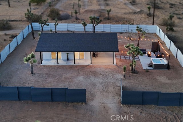 The moment you arrive you will know you have found “The One” ~ The home that feels as if it was built just for you ~ Tucked away for privacy but only minutes from Joshua Tree National Park, Old Town shopping, and local dining ~ “The Little House” is a brand new 2026 efficient gem ~ Inside this well-designed space is an open floor plan with high ceilings, dual zone mini splits, all in 1 washer and dryer unit in the full bath, and tankless Navian water heater ~ The kitchen features full size appliances with Quartz counter tops and a black farmhouse sink for a sleek modern touch ~ Two sets of dual-pane sliding doors lead to an expansive patio, seamlessly blending indoor and outdoor living ~ Outside, the property transforms into a private desert sanctuary ~ Enjoy watching the sun rises over the mountains as you sip your morning coffee, an outdoor shower for post-hike refreshes or spend evenings soaking in the spa and hosting friends around the firepit, creating memories under a canopy of stars ~ Privacy fencing ensures your outdoor living space remains your own serene haven ~ Small but mighty, this versatile property is perfect as a full-time residence, a serene weekend getaway, or a high-potential short-term rental investment ~ This one is a must see!
