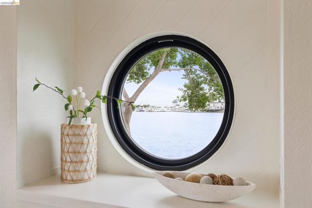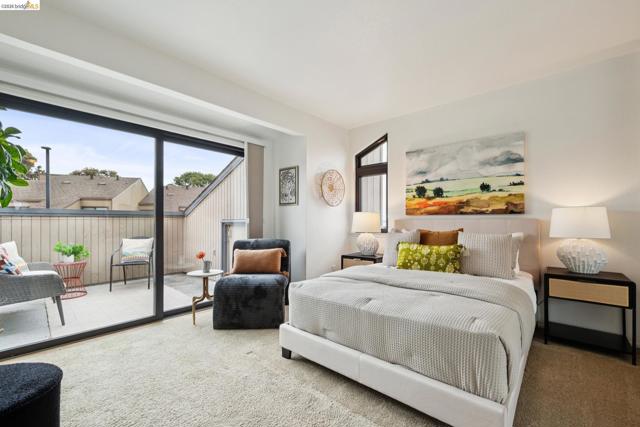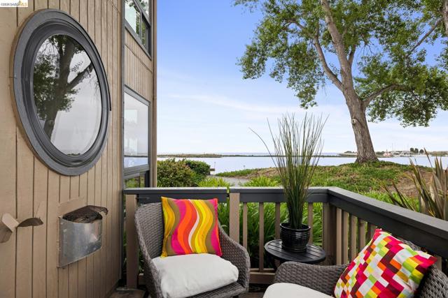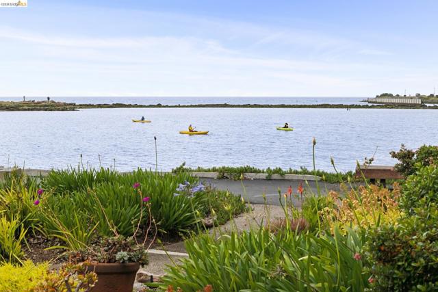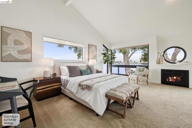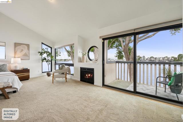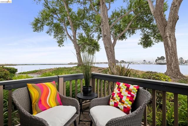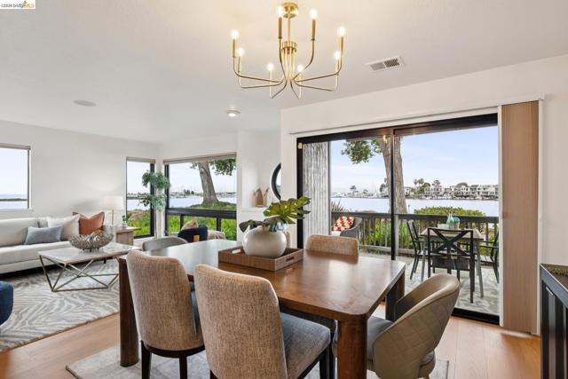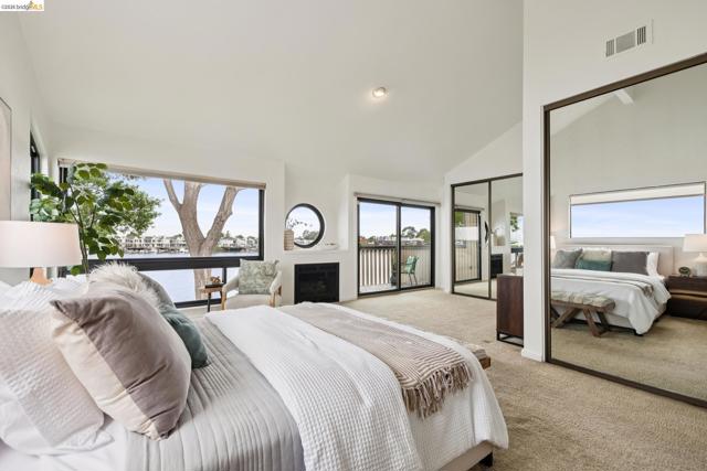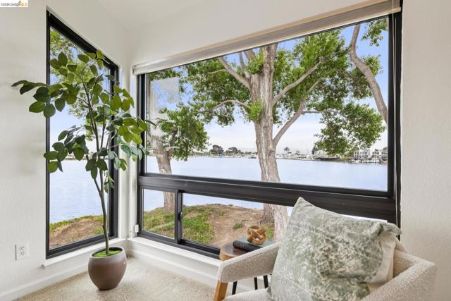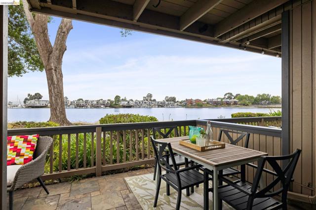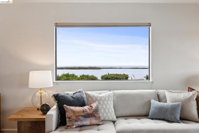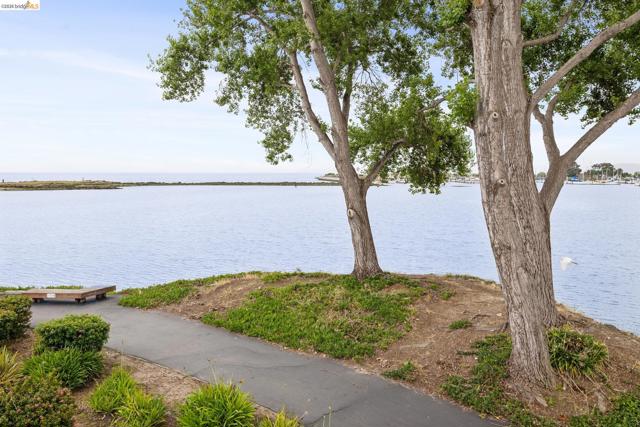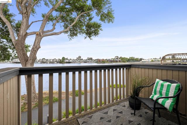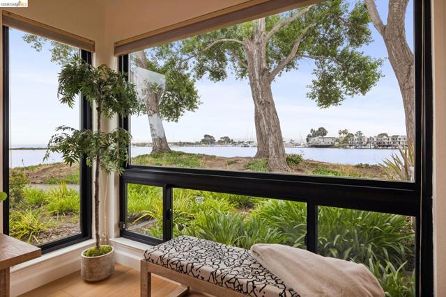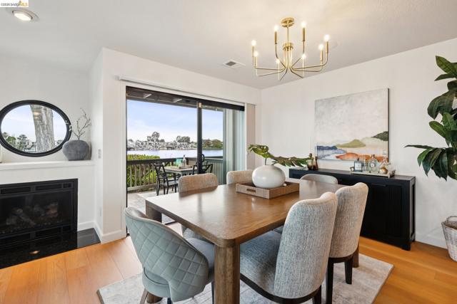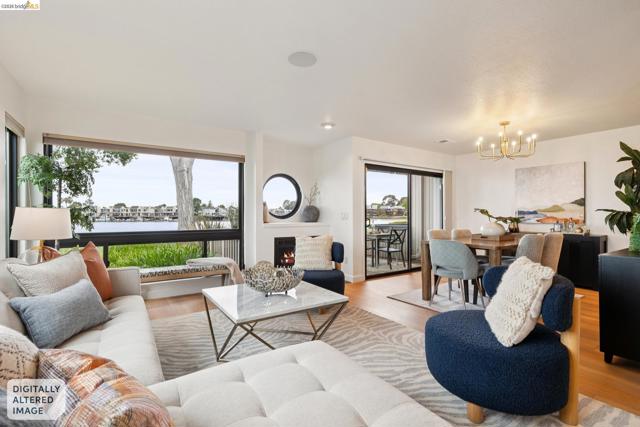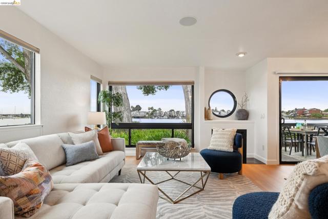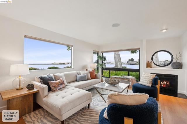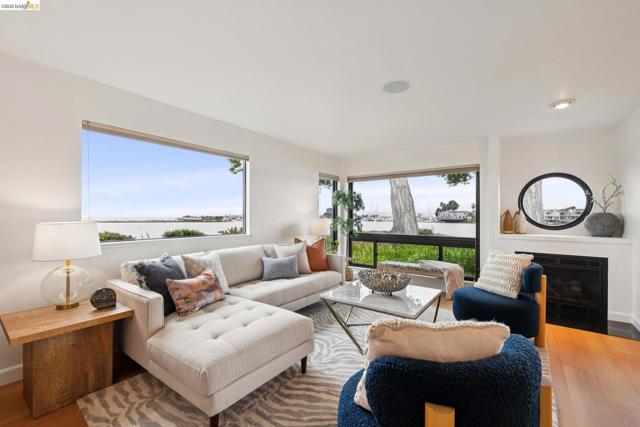 Rare 2-story condo that lives like a single-family home with sweeping views of the marina, SF Bay & Crown Memorial Beach. This light-filled residence offers a seamless floorplan designed to maximize its stunning setting. Features include newer luxury laminate flooring, updated kitchen with stone counters, solid maple cabinetry, stainless appliances, pull-out drawers & under-cabinet lighting. Effortless flow connects dining, side patio, garage & den. Two updated fireplaces add warmth & modern style. Upstairs, the primary suite is a retreat with vaulted ceilings, private view patio, plush carpet & spa-like bath with skylight, radiant heat floors, double sinks & soaking tub designed to retain heat. Updated hall bath serves additional bedrooms. One bedroom opens to a second patio with deep storage. Attached 2-car garage with laundry hookups, built-ins & loft storage. HOA covers exterior maintenance. Close to Webster St shops, restaurants, ferry & freeway access.