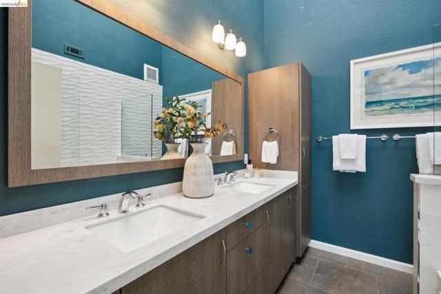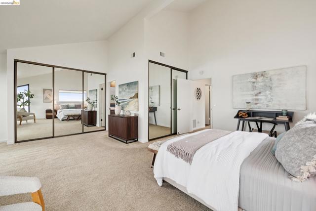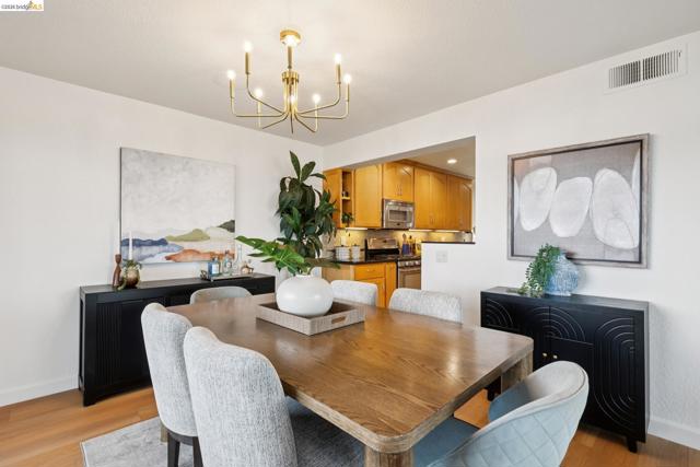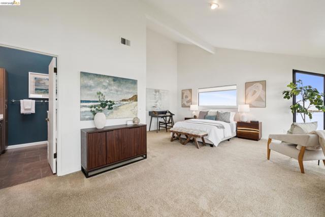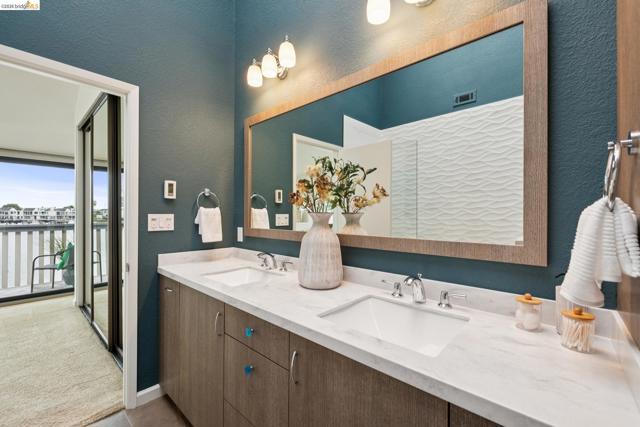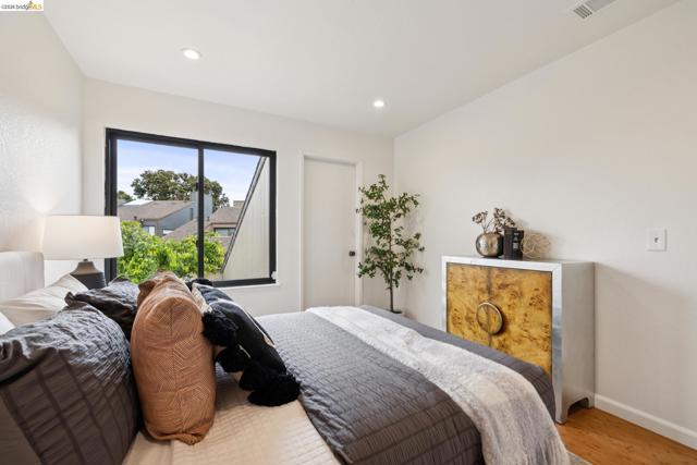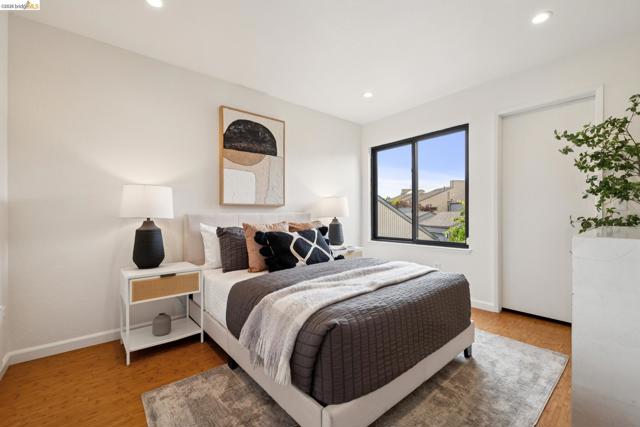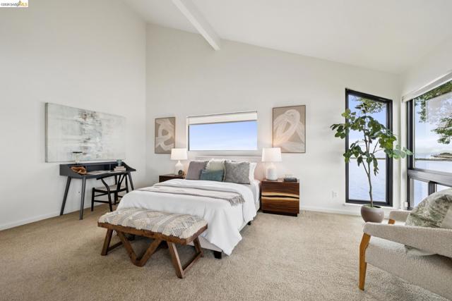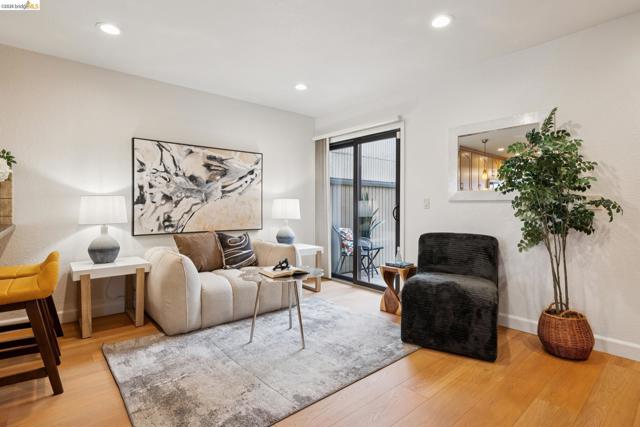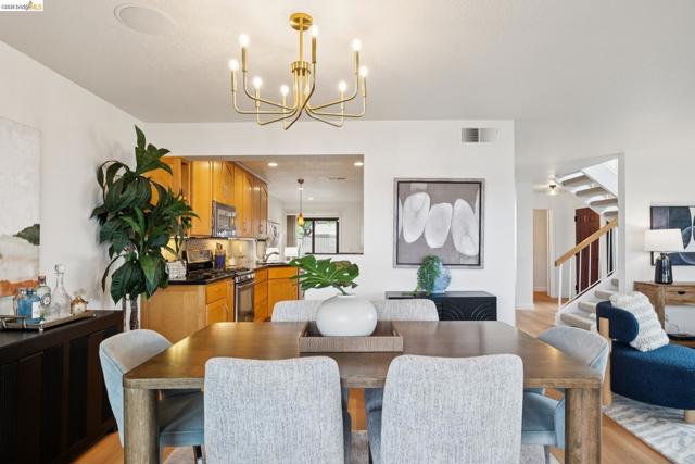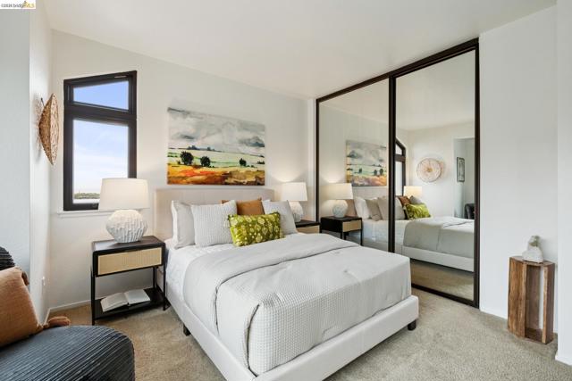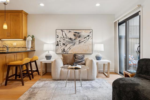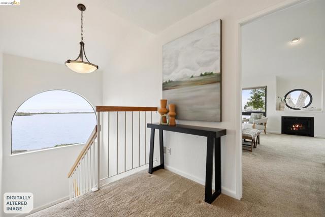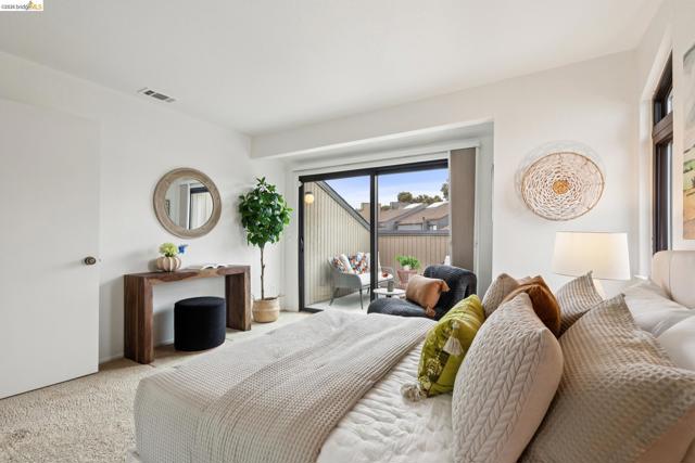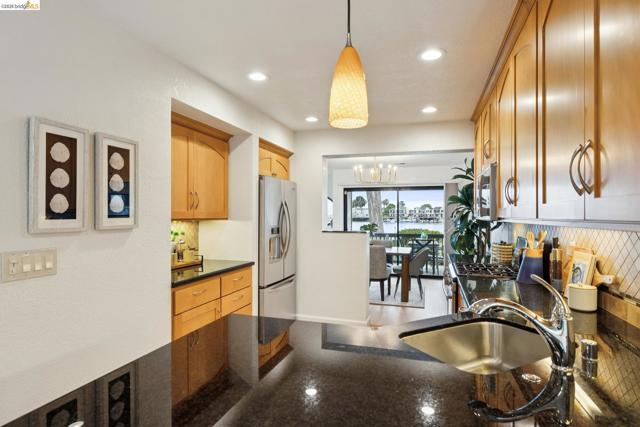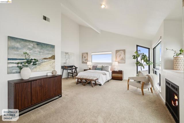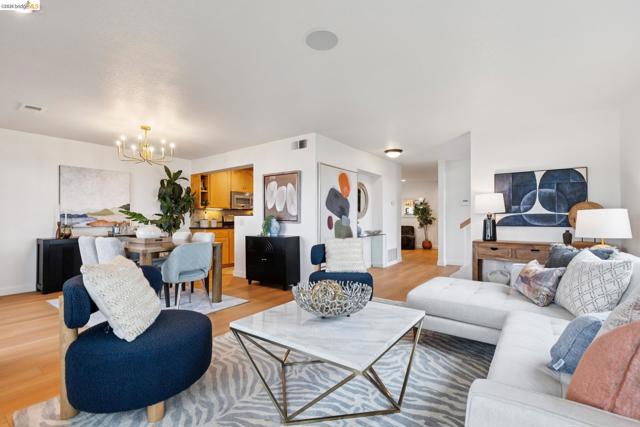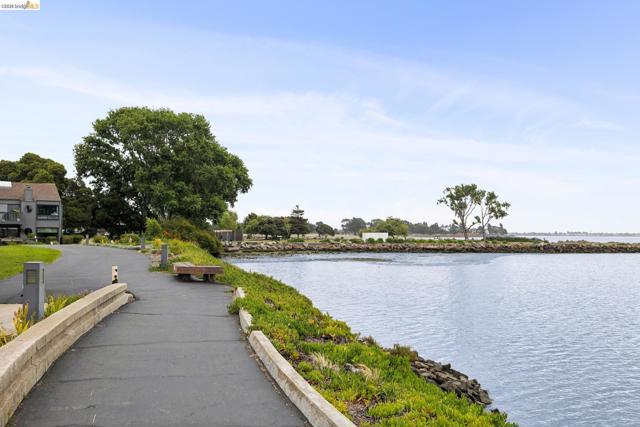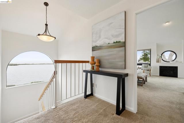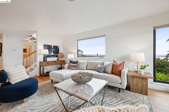 Rare 2-story condo that lives like a single-family home with sweeping views of the marina, SF Bay & Crown Memorial Beach. This light-filled residence offers a seamless floorplan designed to maximize its stunning setting. Features include newer luxury laminate flooring, updated kitchen with stone counters, solid maple cabinetry, stainless appliances, pull-out drawers & under-cabinet lighting. Effortless flow connects dining, side patio, garage & den. Two updated fireplaces add warmth & modern style. Upstairs, the primary suite is a retreat with vaulted ceilings, private view patio, plush carpet & spa-like bath with skylight, radiant heat floors, double sinks & soaking tub designed to retain heat. Updated hall bath serves additional bedrooms. One bedroom opens to a second patio with deep storage. Attached 2-car garage with laundry hookups, built-ins & loft storage. HOA covers exterior maintenance. Close to Webster St shops, restaurants, ferry & freeway access.