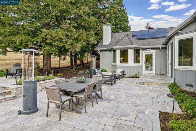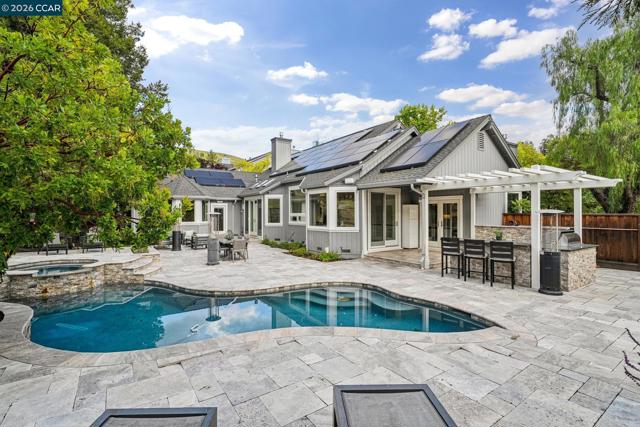 NEW LISTING!!! STUNNING 1 STORY CONTEMPORARY REMODEL in RANCHO PARAISO offers high ceilings, hardwood floors and custom lighting throughout, INVITING LIVING ROOM with modern fireplace and dining room with French patio doors to FABULOUS BACKYARD, DREAM KITCHEN with custom cabinetry, top of the line appliances including Miele cappuccino station, and eat-in dining area with patio doors to FABULOUS BACKYARD, IMPRESSIVE FAMILY ROOM with vaulted ceilings, skylights, art niches, surround sound, modern fireplace and patio doors to FABULOUS BACKYARD, 4 bedrooms includes the PRIMARY SUITE RETREAT with modern fireplace, patio door to FABULOUS BACKYARD and remodeled primary bath with HEATED FLOORS and walk-in closet, 3 additional bedrooms includes 2 bedrooms with BUILT-INS including cabinetry, desk, and murphy bed that share remodeled Jack & Jill bath, 4th bedroom with built-in desk, window seat and cabinetry adjoins remodeled full bath, LARGE 3 CAR GARAGE with epoxy floors and extensive storage, STATE OF THE ART CONTROL 4 SYSTEM and BUILT-IN SPEAKERS throughout home, OWNED SOLAR SYSTEM with TESLA BATTERIES, and FABULOUS BACKYARD featuring expansive patios including a covered outdoor patio area with lighting and fan for dining Alfresco, BUILT-IN BBQ with seating bar and beverage refrigerator, BUILT-IN SPEAKERS, mature trees and GORGEOUS POOL/SPA with a sheer descent waterfall and custom lighting... Excellent Northgate Schools. Close proximity to local trails, Arbolado Park, Mt. Diablo, Shadowbrook Winery, Boundary Oak Golf, Whole Foods Shopping and so much more!!
