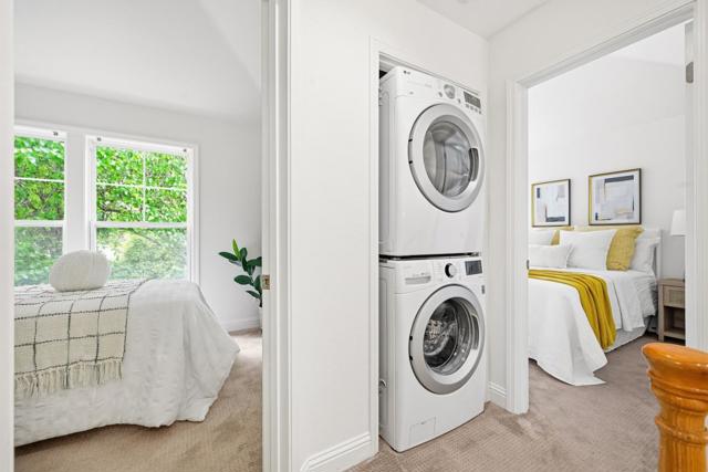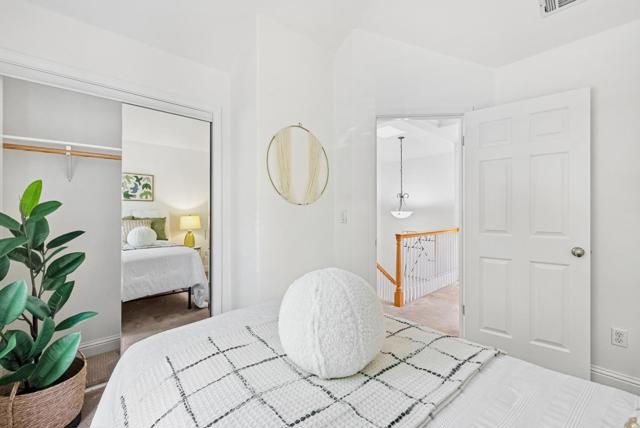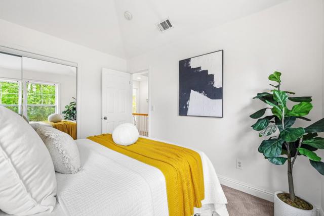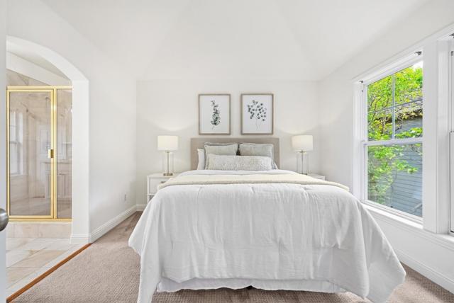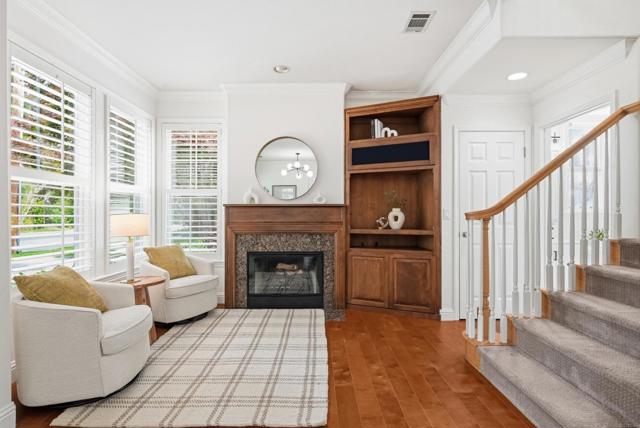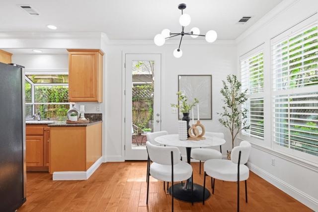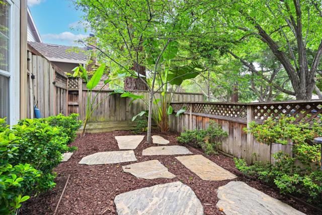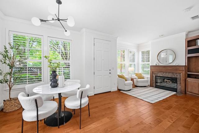 Welcome to this 2001-built, end-unit, two-story Tudor-style townhome with a private yard in convenient Menlo Park. The home features an enclosed front yard. Upon entry, an inviting living room with bright windows and hardwood flooring offers a cozy fireplace and built-in shelf, with a nearby half bath for convenience. The living room flows into a dining area with a stylish pendant light and direct access to the private yard, creating seamless indoor-outdoor living. The gourmet kitchen is equipped with granite countertops, stainless steel appliances, and ample cabinetry. Upstairs, the stairway is illuminated by a skylight and a pendant light. The primary suite features a spacious bedroom with vaulted ceilings and large windows, along with an en-suite bathroom offering a double vanity with a stone countertop, stall shower, and walk-in closet. Two additional bedrooms, both with vaulted ceilings, share a hallway bathroom with a shower over tub. A washer and dryer on the upper level add convenience. Additional highlights include recessed lighting and an attached garage. Ideally located near downtown Menlo Park, within walking distance to Menlo School and Sacred Heart School, with easy access to restaurants, grocery stores, and shopping. Do not miss this great opportunity!