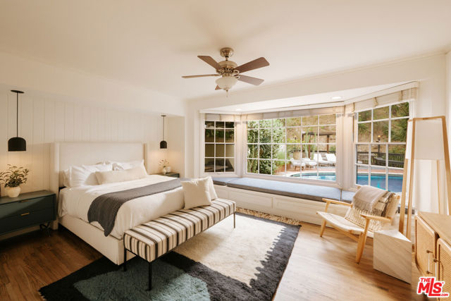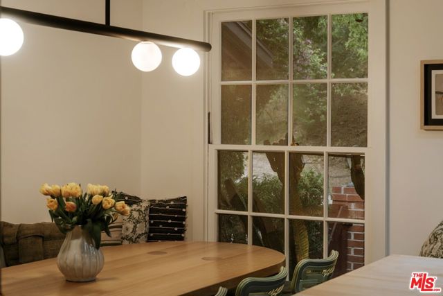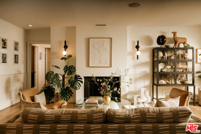 Tucked into the coveted hills of Nichols Canyon, just moments from the Sunset Strip, this gated, fully reimagined estate offers a rare private resort experience in the heart of Los Angeles. Enveloped by lush gardens and mature landscaping, the residence blends sophisticated design with effortless indoor outdoor living, creating a setting that feels worlds away from the city, with a nearby creek and the sounds of wildlife giving a sense of calm and seclusion despite being moments from the best of LA. A formal living room with fireplace, a beautifully renovated chef's kitchen with custom built-in banquette, and an expansive media room with theater-quality surround sound create spaces equally suited for intimate living and grand entertaining. Designed to embrace its tranquil setting, the living and dining areas open seamlessly to a spectacular outdoor retreat featuring a newly remodeled pool and spa, surrounded by curated landscaping by Studio John Sharp. The main level also includes a spacious guest suite overlooking the pool, along with two additional rooms ideal for guests, offices, or creative studios. Occupying the entire upper level, the luxurious primary suite is a true sanctuary, complete with fireplace, private patio, and a spa-inspired bath featuring a steam, triple rain-head shower, and dual vanities. Thoughtfully designed at every turn, with ideal scale, privacy, and seamless flow, 2015 Nichols Canyon is a rare turnkey retreat, an urban oasis where nature and city living exist in perfect balance.