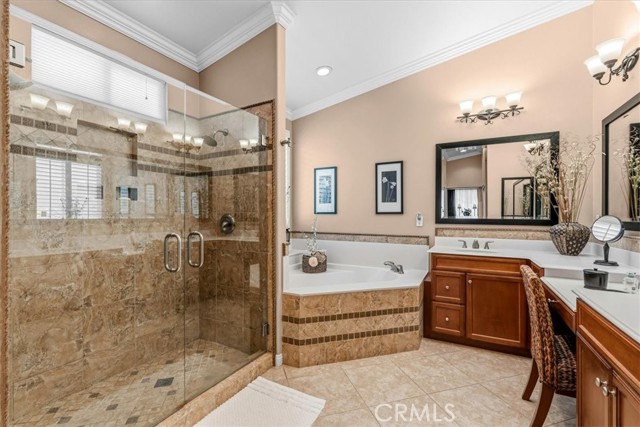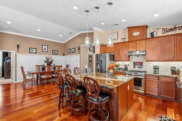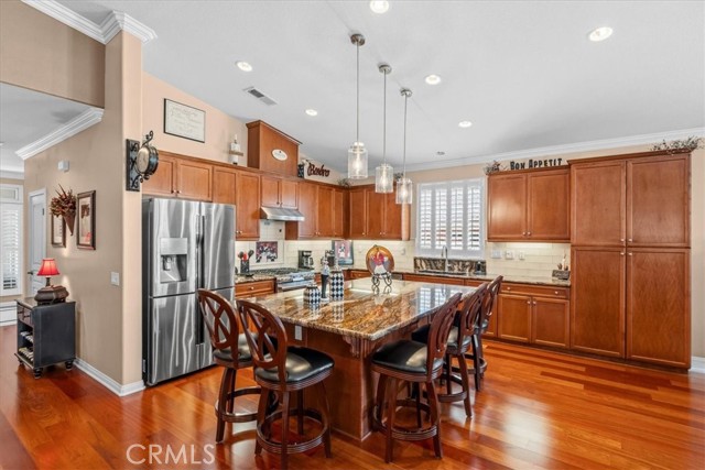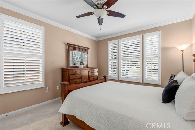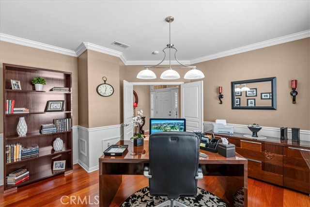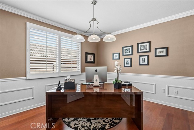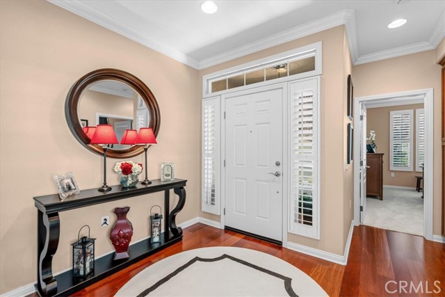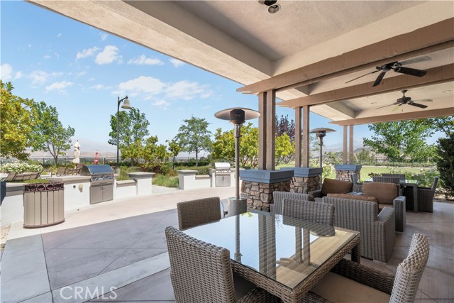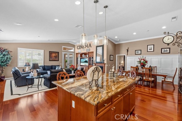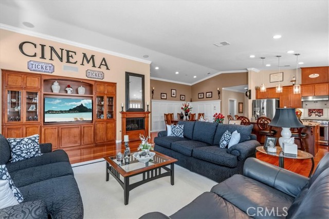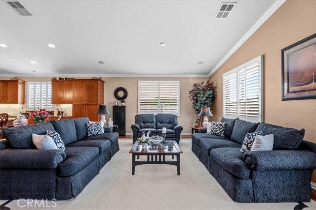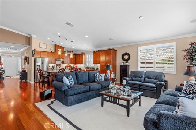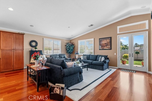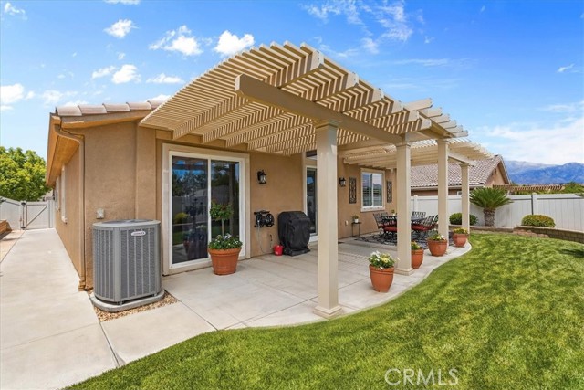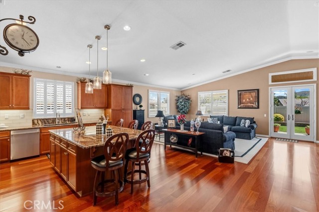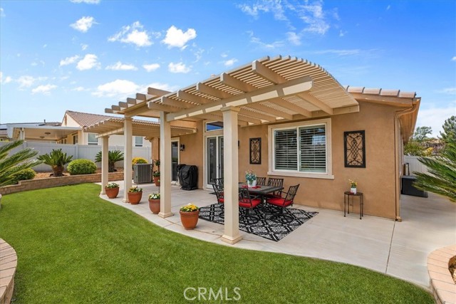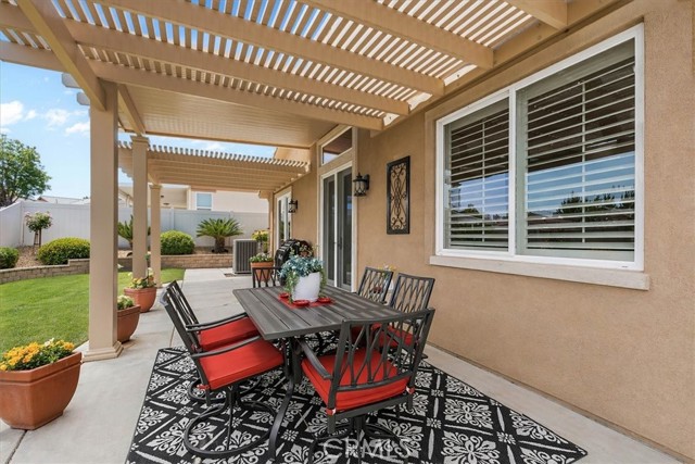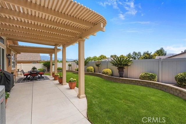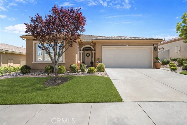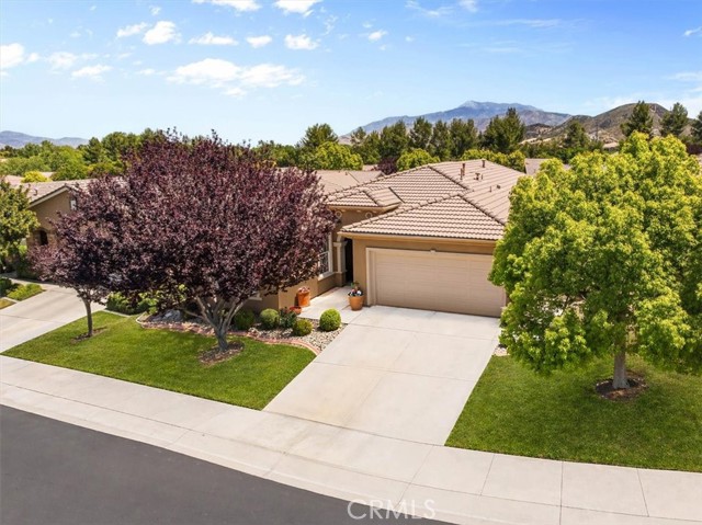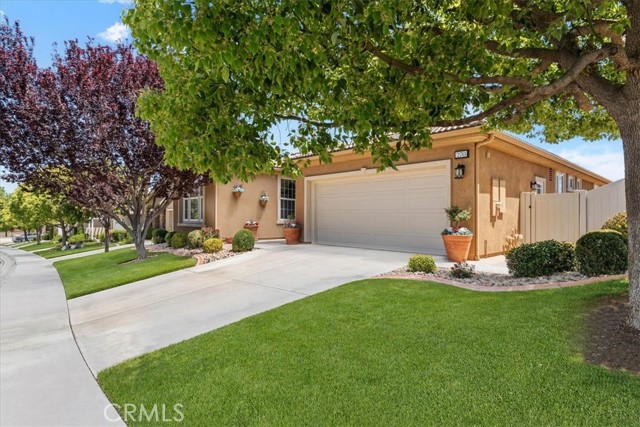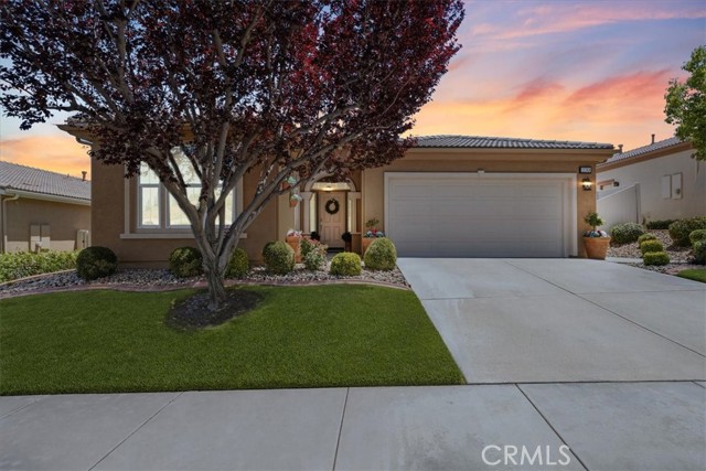 Beautifully Upgraded Heritage III Model. Welcome to one of Four Seasons’ thoughtfully upgraded homes — where designer details, effortless single-story living, and resort-style amenities come together in one exceptional package. From the moment you enter, the quality is undeniable. Rich Brazilian cherry engineered hardwood flooring, crown molding, wainscoting, plantation shutters, and recessed lighting create an atmosphere of refined elegance throughout. The spacious great room centers around a cozy fireplace flanked by custom built-ins that opens seamlessly to the backyard through a large sliding glass door — filling the home with natural light and an easy indoor-outdoor flow. The gourmet kitchen is a true entertainer's delight, featuring a generous island with seating, granite countertops, stainless steel appliances, a custom tile backsplash, and an abundance of cabinetry. It opens directly to the family room, making hosting family and friends a natural pleasure. Just off the entry, a private den/office with double-door entry, crown molding, and wainscoting offers a quiet, distinguished space — ideal for reading, hobbies, or working from home. The primary suite is a genuine retreat — spacious and serene, with a soaking tub, separate walk-in shower, and generous walk-in closets designed for comfortable everyday living. The secondary bedroom is well-sized and bright, providing a welcoming space for visiting guests. A dedicated laundry room with sink and additional storage rounds out the practical, thoughtful floor plan. Step outside to your private backyard oasis, where an expansive Alumawood patio cover creates the perfect shaded retreat for morning coffee or evening entertaining. Manicured landscaping, decorative hardscape, and carefully placed planters complete a backyard that is as beautiful as it is low-maintenance. All of this within the prestigious gates of Four Seasons Beaumont — a gated community with gate attendant and celebrated for its tree-lined streets, manicured grounds, walking trails, and resort amenities. Residents enjoy an unmatched lifestyle with three clubhouses, an indoor pool, two outdoor pools, pickleball and lighted tennis courts, two fitness centers, an on-site restaurant, billiard room, movie theater, dog park, and a vibrant calendar of social activities that fosters genuine community connection. Enjoy the low taxes too, this home has low special assessments. Welcome home.