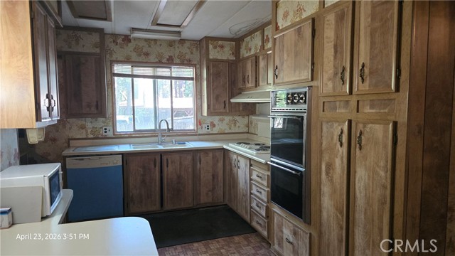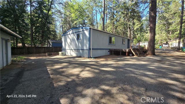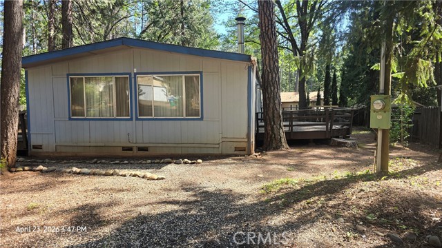 FIXER OPPORTUNITY--1980 MANUFACTURED HOME ON LAND WITH SHOP SPACE & FULLY FENCED LOT! Bring your vision and tools—this 2-bedroom, 2-bath home offers incredible potential for the right buyer ready to build sweat equity. Situated on its own fully fenced and gated lot, this property provides privacy, functionality, and room to grow. The home features a spacious living room with a woodstove for heat, a dedicated dining area with a charming built-in hutch showcasing stained glass accents, and a kitchen equipped with an electric cooktop, double wall ovens, and a wall-style pantry. A large, versatile laundry room includes built-in desk space and offers flexibility for a home office, hobby room, extra refrigeration, or pet area, with direct access to the back porch and yard. The primary suite includes a private bathroom with dual sinks, a large vanity, walk-in shower, and linen storage. The guest bedroom enjoys convenient access to a full bath with both hall and private entry. A standout feature is the detached, oversized 2-car garage—perfect for parking, storage, or creating your ideal workshop. The fully fenced property includes double gates at the driveway for added security and ease of access. This is a true fixer, ideal for cash buyers or investors seeking a project with upside potential. Located just minutes from shopping, dining, and everyday conveniences, plus access to Paradise Pines Property Owners Association amenities including a pool, spa, library, meeting spaces, playground, and trails. Outdoor recreation is abundant nearby with lakes, rivers, and miles of hiking, biking, and off-road trails to explore year-round. Opportunity, location, and potential—don’t miss this one!