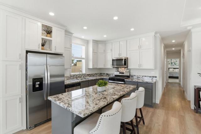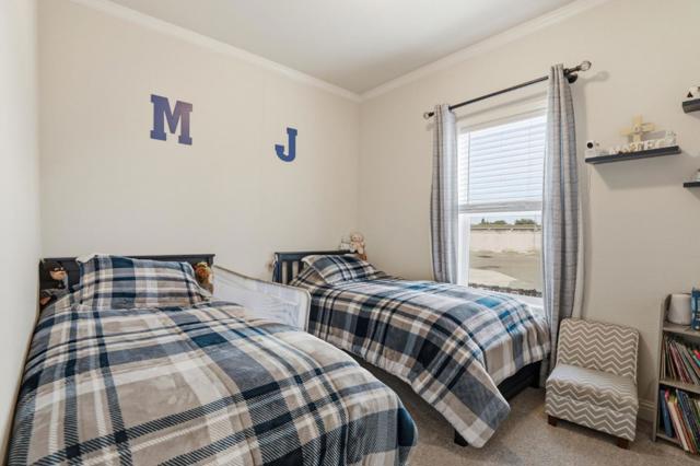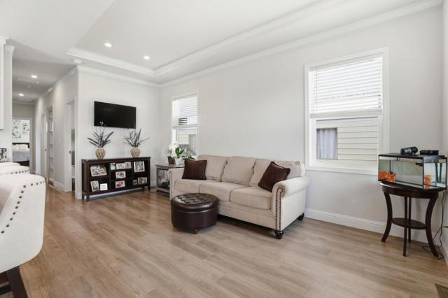 Welcome to this beautifully upgraded newer home in one of Morgan Hills most desirable communities! Built in 2023, this 3-bedroom, 2-bath home offers modern living with an inviting open floor plan and stylish finishes throughout. Step inside to find 9-foot ceilings, sleek laminate flooring, and a bright, airy layout that maximizes every inch of space. The kitchen is thoughtfully designed with rich hardwood cabinetry, stone countertops, and stainless steel appliancesperfect for everyday living and easy entertaining. Enjoy year-round comfort with central air conditioning, and step outside to a low-maintenance yard featuring a small grass areaperfect for a family petalong with a fenced space ideal for kids or added privacy. Situated on a desirable corner lot next to guest parking, this home offers both convenience and functionality. The location is unbeatablejust minutes from Trader Joes, Safeway, Starbucks, and CVS Pharmacy, with easy freeway access and close proximity to vibrant downtown Morgan Hill with its dining, shopping, and entertainment. Plus, enjoy low space rent of just $782/month, making this an incredible opportunity in a prime location! Dont miss your chance to own a nearly new home with modern upgrades and an unbeatable setting!