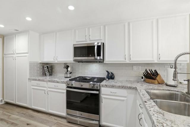 Opportunities like this don't just "COME BY" they vanish. This masterfully renovated 2-story townhouse in the gated Terrace Hills community seamlessly blends contemporary elegance with luxury. Open-concept main level features luxury flooring, a cozy fireplace, private patio ideal for serene morning coffee or intimate gatherings. The gourmet kitchen boasts granite waterfall countertops with a custom pantry, breakfast bar, and high-end stainless induction appliances. The 2-car garage maximizes efficiency with integrated laundry & lots of storage. Upstairs dual skylights flood the home with natural light, leading to 2 spacious high ceiling primary suites designed for ultimate privacy, one featuring a secluded balcony overlooking the tranquil surroundings. Complete with central AC and access to resort-style amenities including 2 swimming pools/Spa, basketball & tennis courts, club-house, gated community featuring private mobile security patrols, RV storage, dog park, and lush greenbelts. This move-in-ready residence offers an unbeatable lifestyle perfect for 1st time buyer or investors. Perfectly positioned just minutes from Evergreen Village Square, shopping centers, schools and seamless commuting with easy access to major routes including Highways 280 and 101.