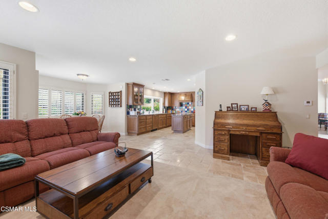 Welcome home to this beautiful East Simi Valley residence that has been thoughtfully maintained and beautifully enhanced for modern living.Set on a generous lot of approximately 14,810 square feet, this rare offering combines space, privacy, and an ideal location within one of Simi Valley's most desirable areas. With 4 bedrooms plus a dedicated office and 3 bathrooms, the 2,951 sq ft floorplan is perfectly suited for today's growing families.At the center of the home is a stunning remodeled kitchen--designed to bring people together with both style and functionality. Multiple living spaces are warmed by two fireplaces, creating inviting areas for relaxation and connection. Beautiful tile flooring throughout downstairs.Step outside to a peaceful backyard retreat where mature fruit trees create a sense of natural abundance and tranquility. Whether entertaining, gardening, or simply unwinding, the outdoor space is a true extension of the home's livability.Additional highlights include immaculate turnkey condition, no HOA restrictions, and unbeatable proximity to freeway access, hiking, golf course, shopping, and award-winning elementary schools.Homes like this--especially in East Simi Valley--rarely come to market.