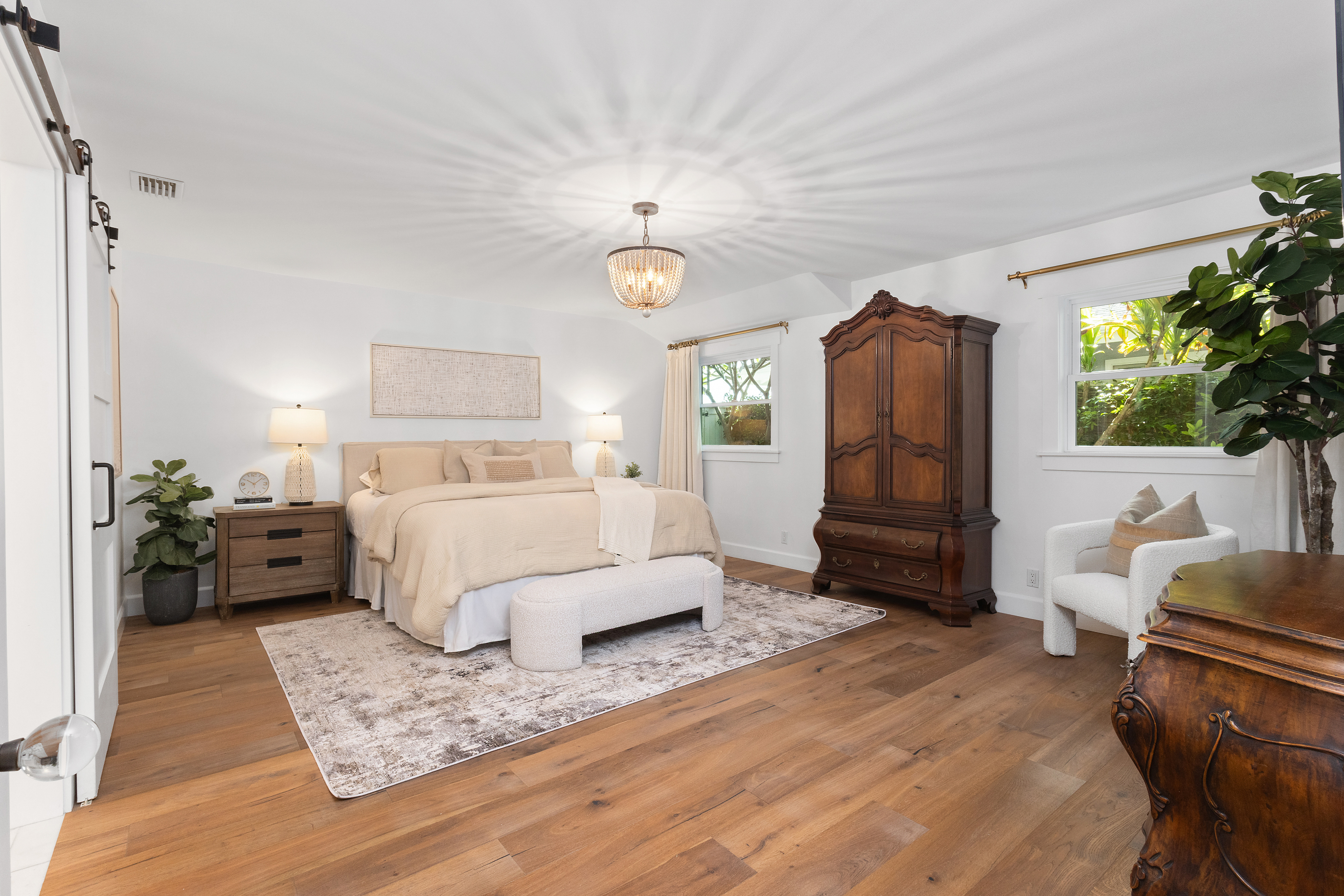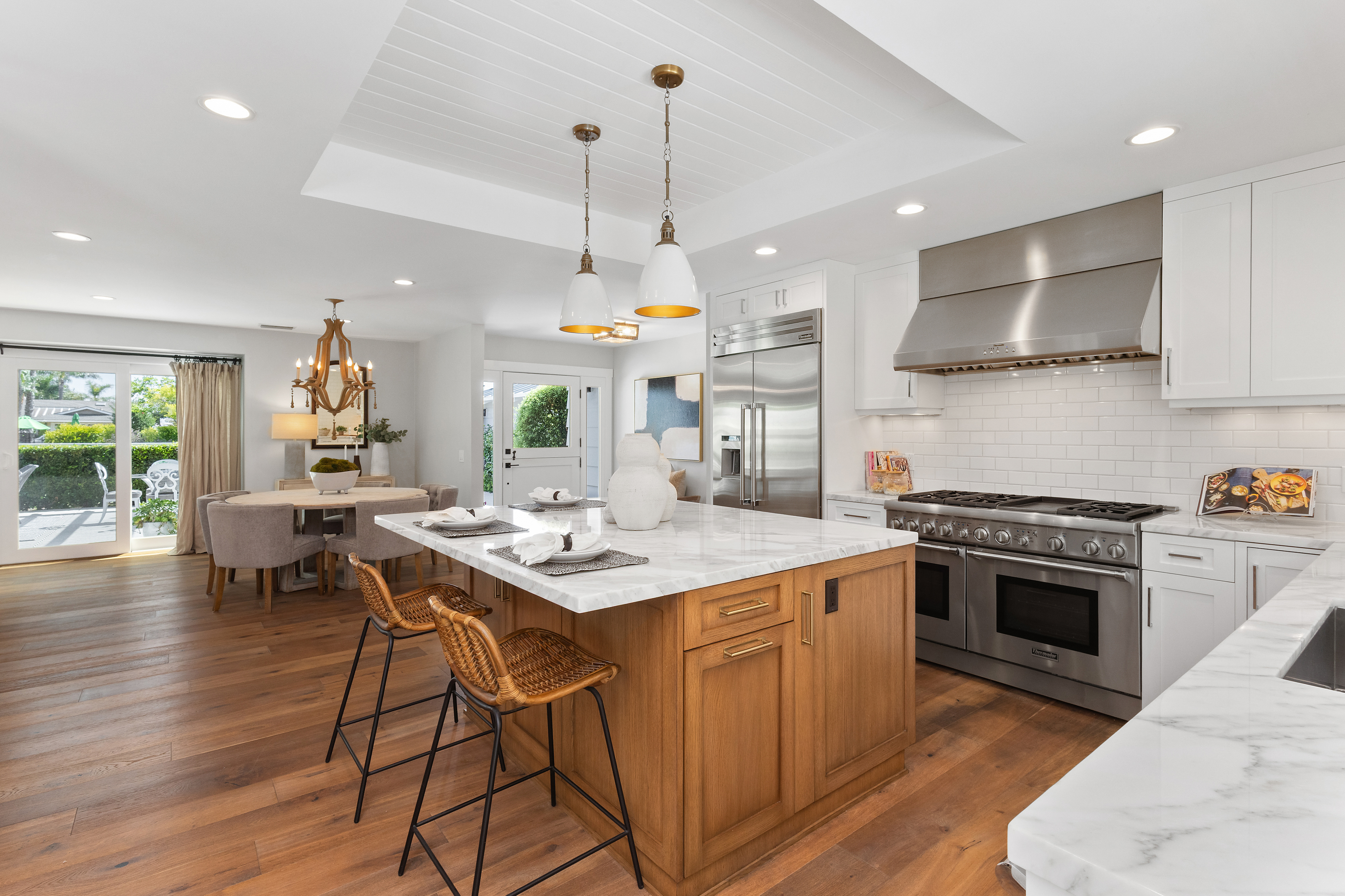 Tucked away on a serene cul-de-sac of just 17 homes, 2301 Private Road is a hidden gem in a quintessential “Leave It To Beaver” neighborhood, complete with a central park, community pool, and charming cabana. This beautifully reimagined three-bedroom, two-bathroom residence features oak hardwood floors, a remodeled chef’s kitchen with top-of-the-line Thermador appliances, and spa-like bathrooms that deliver true wow factor. Designer lighting and thoughtful touches elevate every room, while a versatile office or playroom adds flexibility to the floorplan. The California room, framed by a manicured hedge for privacy, boasts a built-in fireplace and trellis, offering a seamless indoor-outdoor lifestyle. The backyard continues the theme with a built-in BBQ island, firepit, and trellis-covered dining area—perfect for entertaining. Lovingly cared for and move-in ready, this home is a rare opportunity to enjoy timeless style and modern comfort in one of the area’s most desirable enclaves.